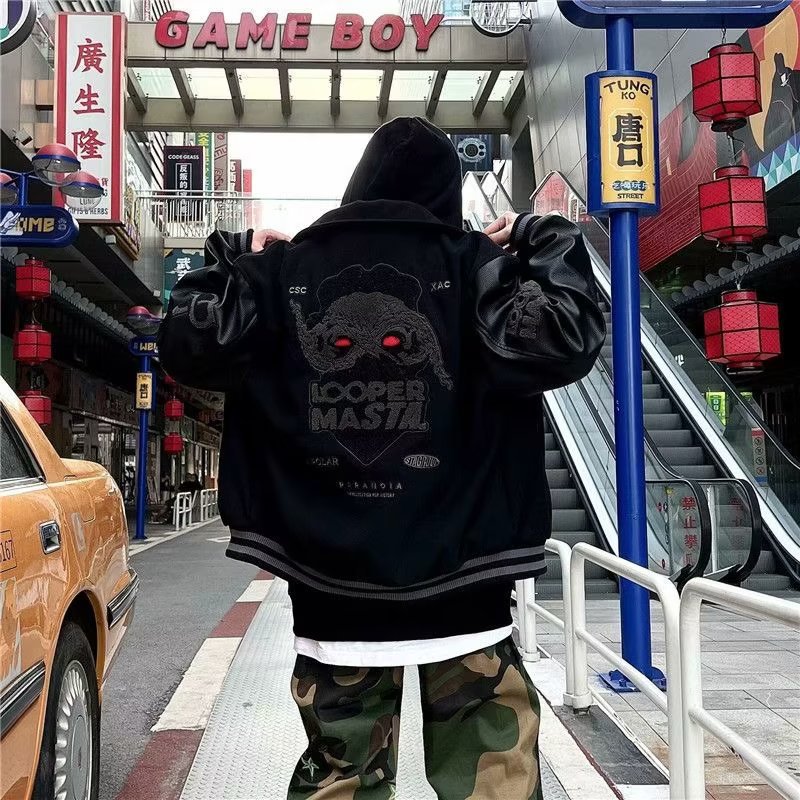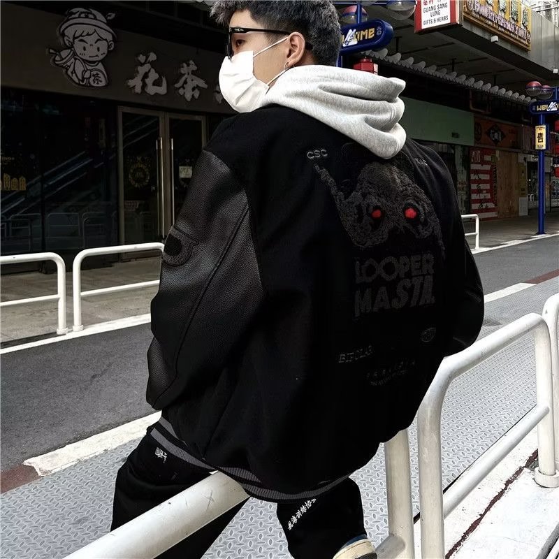 아메리칸 스타일 블록버스터 전국 트렌디 브랜드 야구 세트 남성 봄과 가을 마스크 일반 자수 PU 가죽 코트 하이 스트리트 힙합 재킷 유행스토어 가기