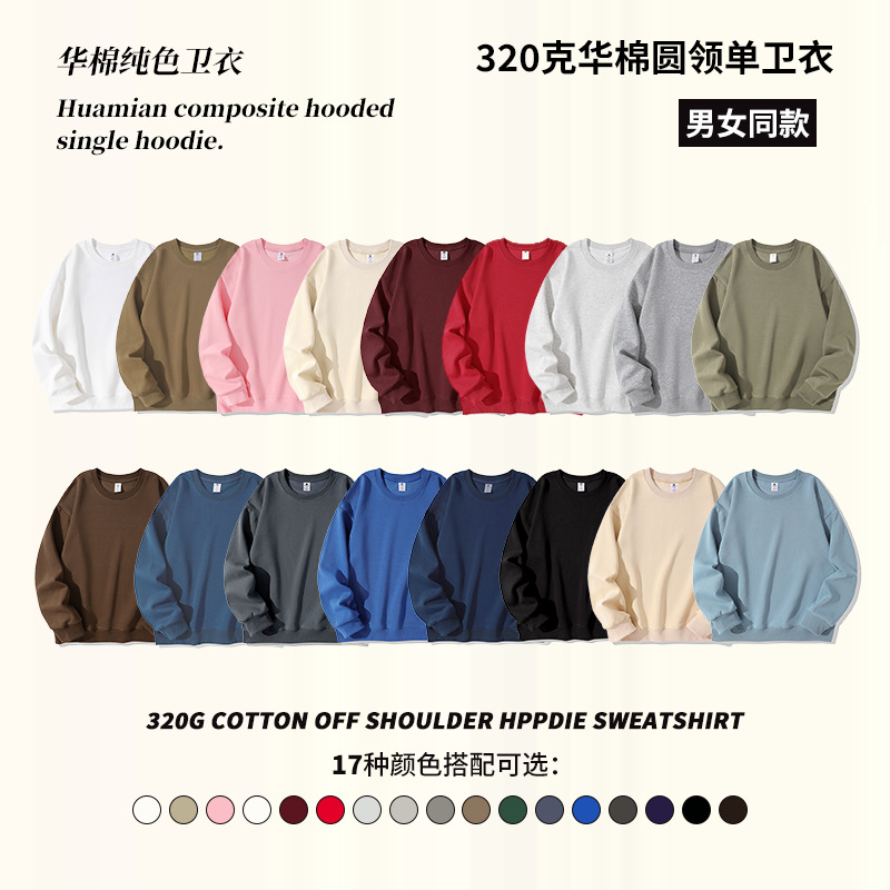 생방송 가을 중국 면 320g 마이크로 드롭 숄더 라운드 넥 스웨트 셔츠 솔리드 컬러 캐주얼 스포츠 긴팔 인쇄 가능 다림질 및 자수 가능스토어 가기