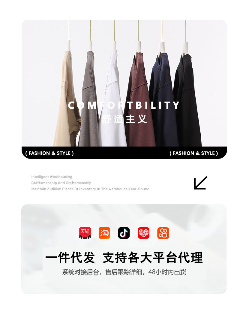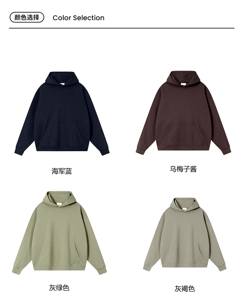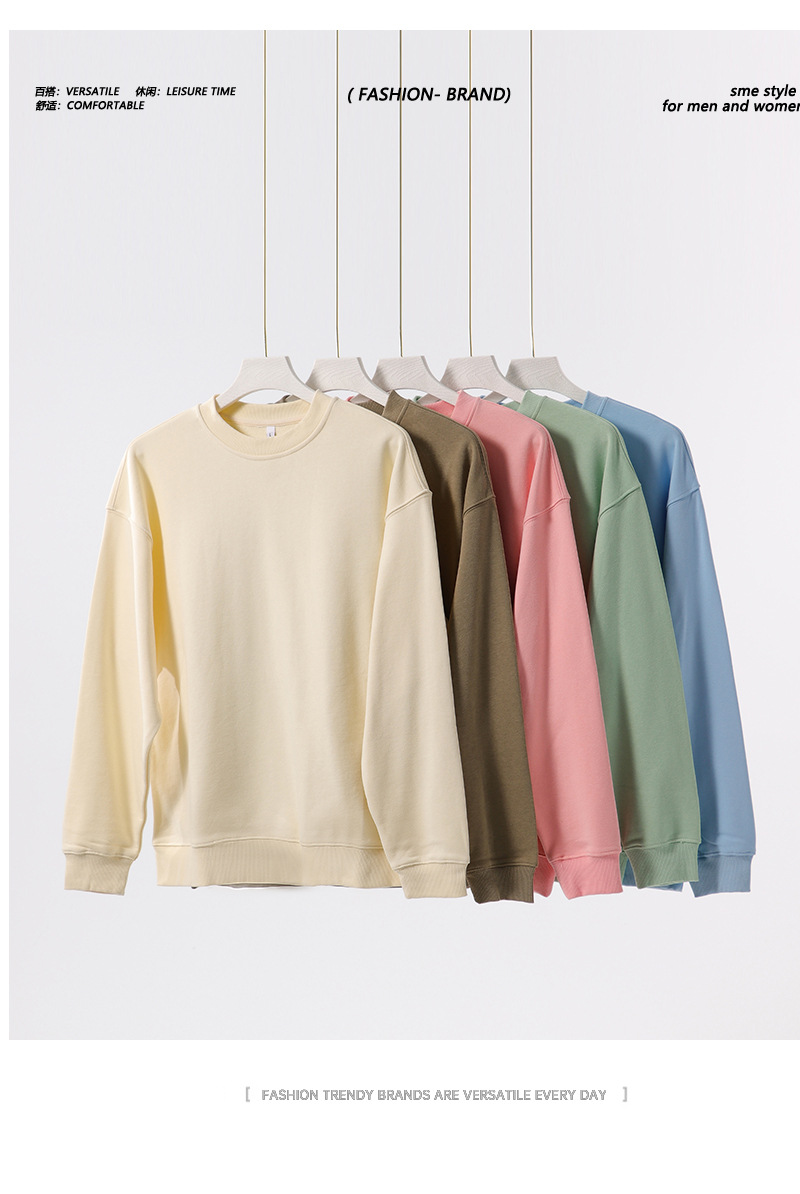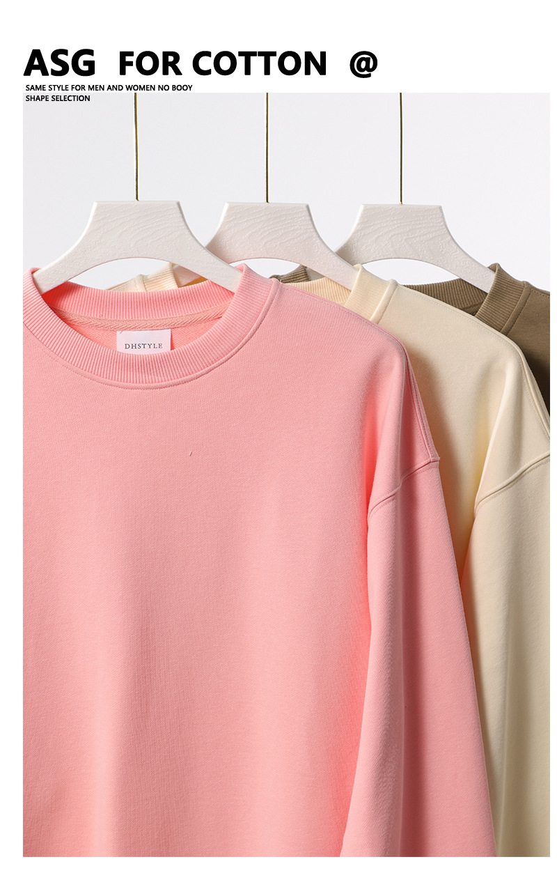 380g 빗질 코튼 헤비 빅 테리 드롭 숄더 크루넥 스웨터 남성 패션 가을과 겨울 두꺼운 단색 긴 소매 기본 셔츠 여성