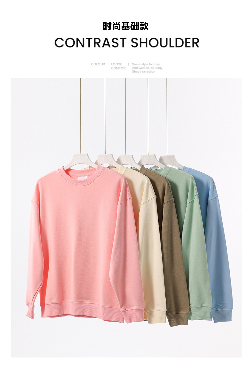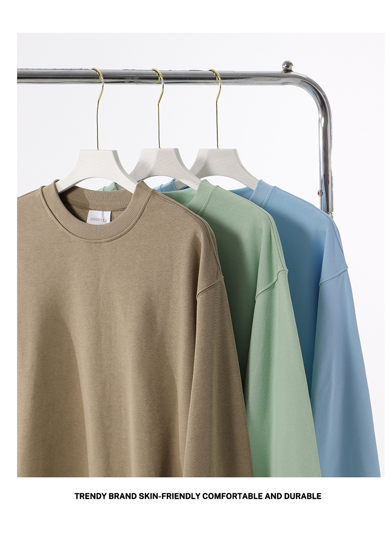 380g 빗질 코튼 헤비 빅 테리 드롭 숄더 크루넥 스웨터 남성 패션 가을과 겨울 두꺼운 단색 긴 소매 기본 셔츠 여성스토어 가기