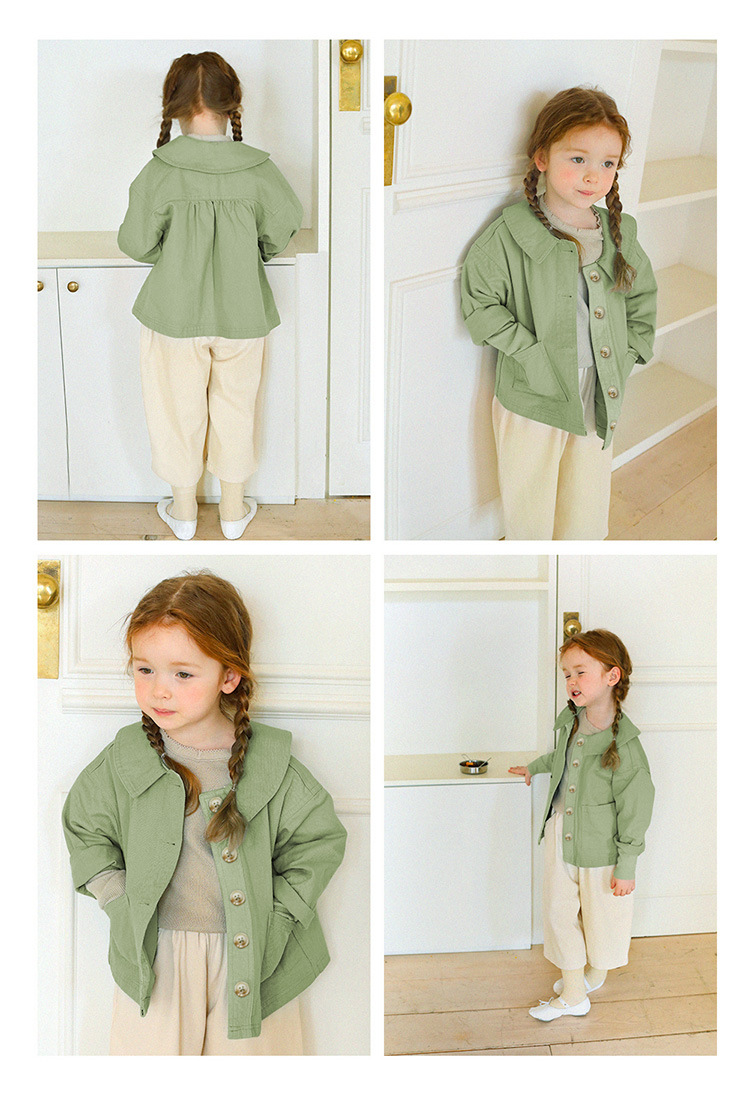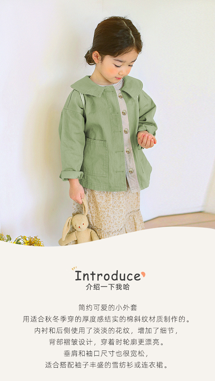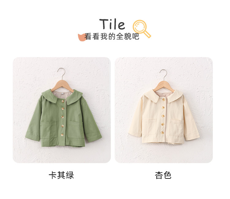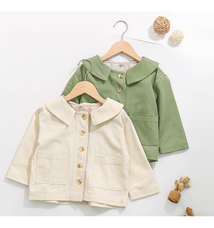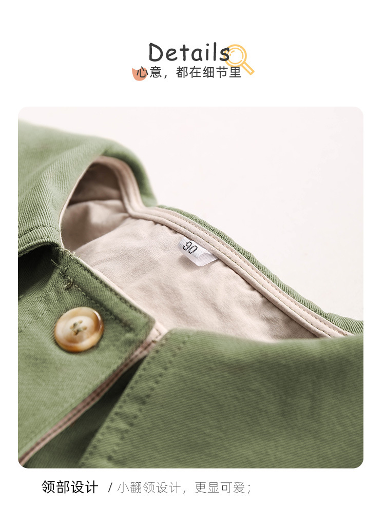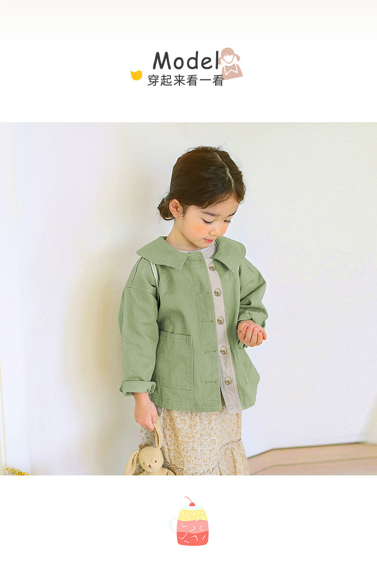 여아용 워싱 코튼 긴팔 재킷, 짧은 스타일, 단색, 라펠 디자인, 더블 포켓, 귀여운 봄 가을 방풍 가디건 상의스토어 가기