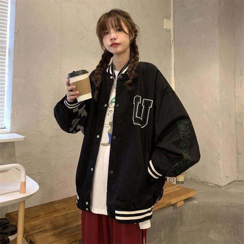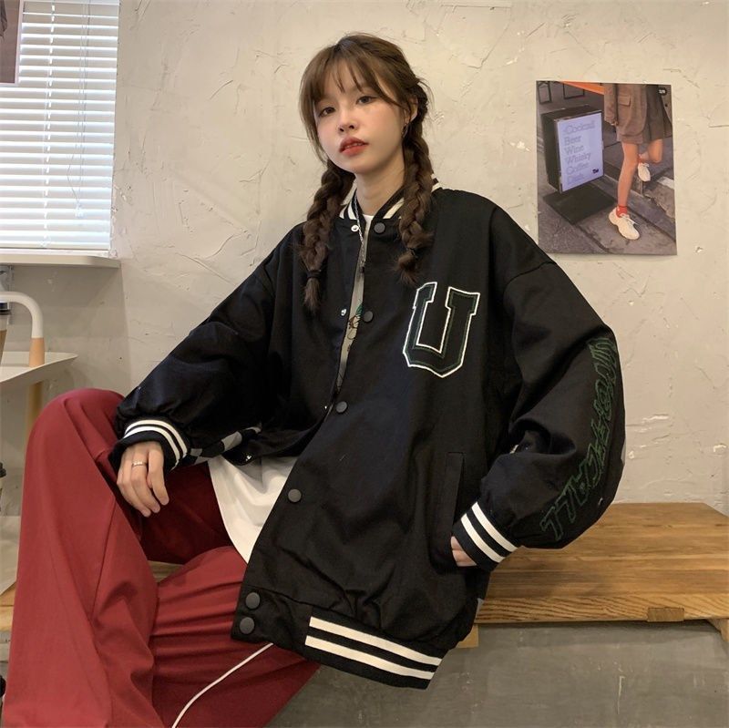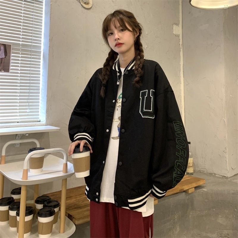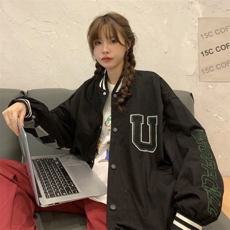 코트 여자의 봄과 가을 2023 새로운 한국 캐주얼 느슨한 빈티지 야구 세트 가을 재킷 트렌디 탑스토어 가기