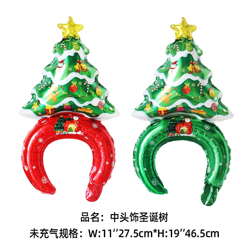 2025년 크리스마스 중형 핸드헬드 스틱 풍선 크리스마스 트리 엘크 뿔 산타클로스 중형 머리띠 풍선 장식
