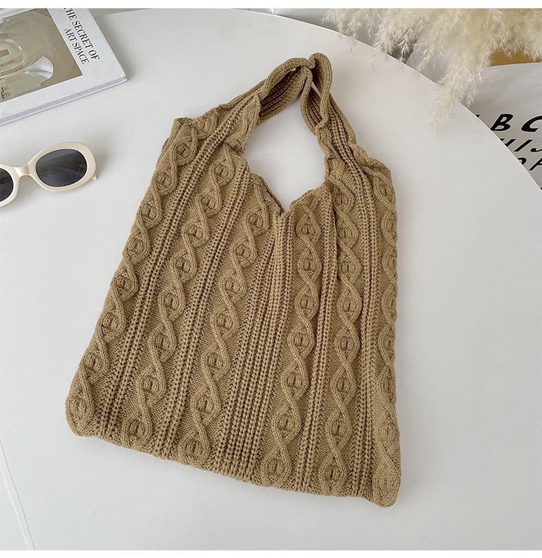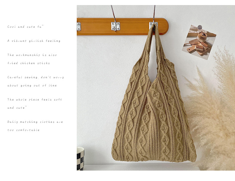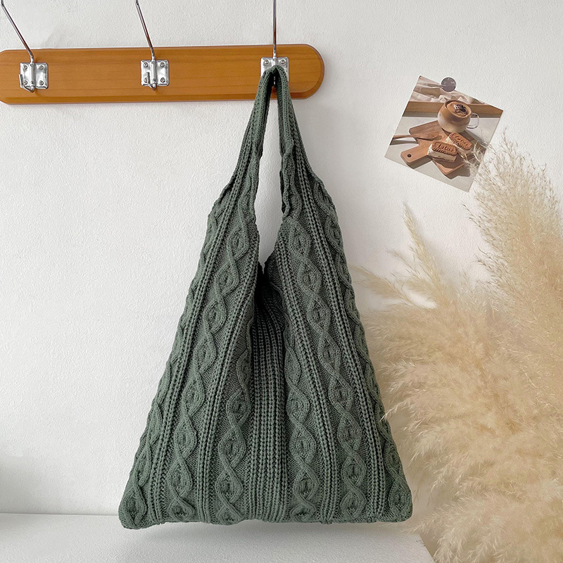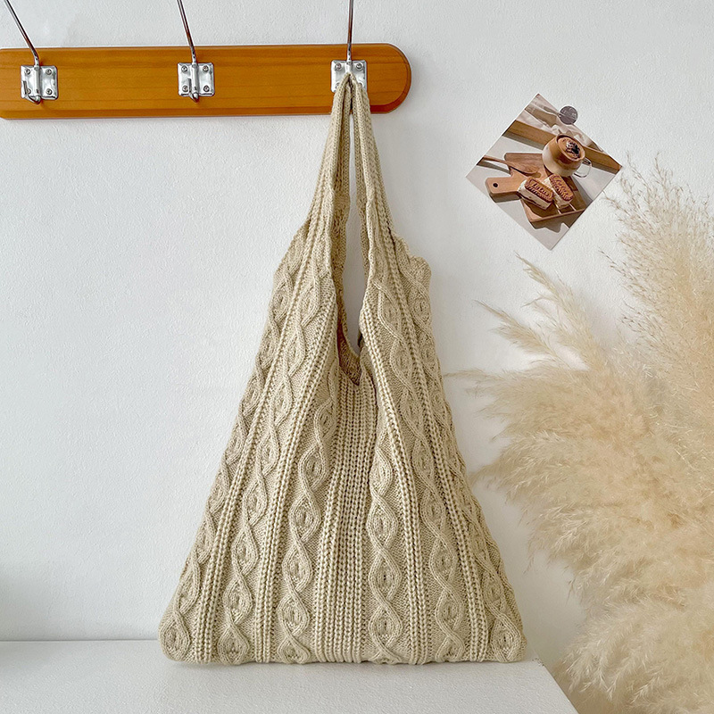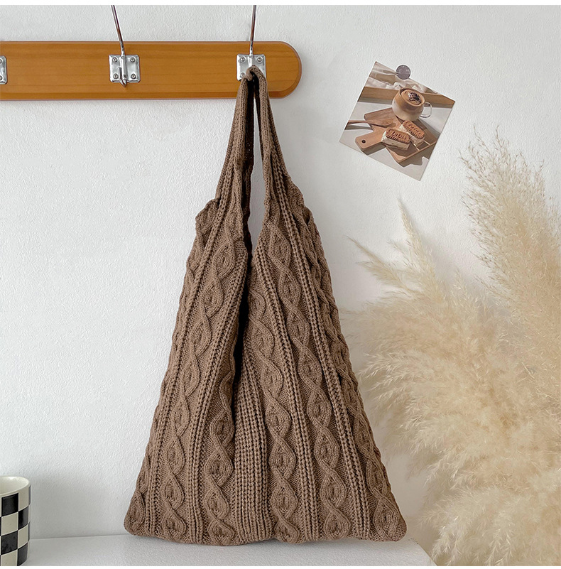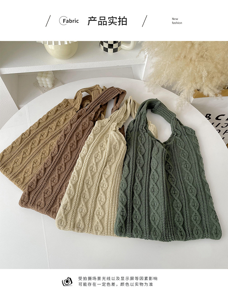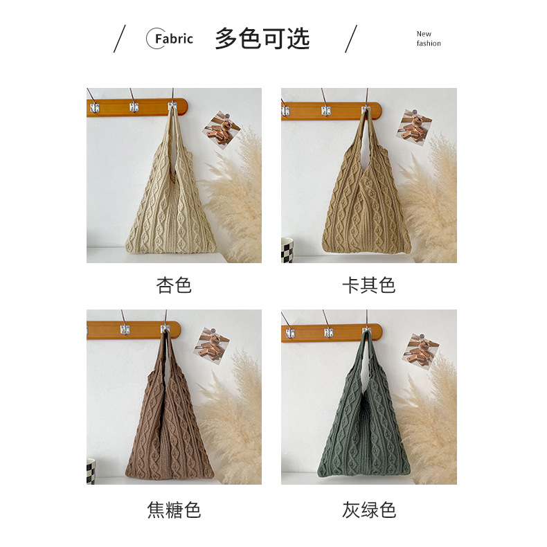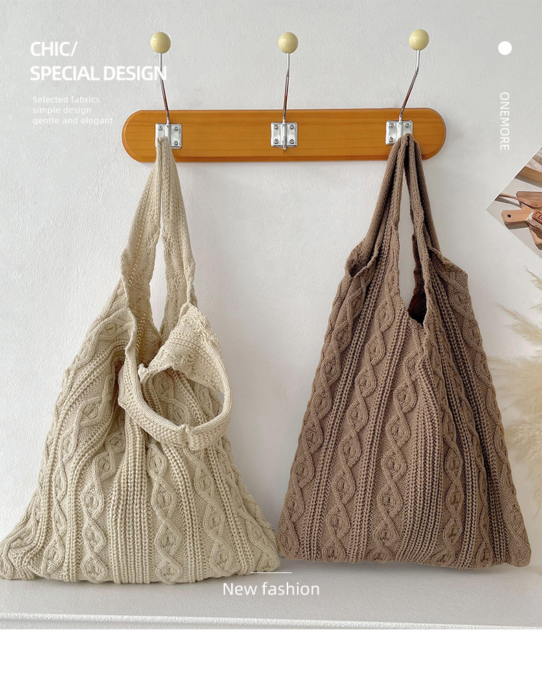 틈새 디자인 수제 울 짠 가방 심플한 모든 매치 니트 숄더백 핸드백 여성용 대용량 토트백스토어 가기