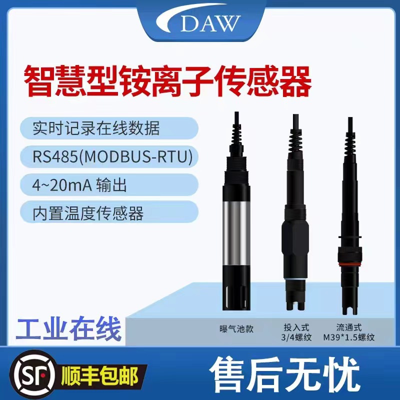 지능형 암모늄 이온 센서 실시간 기록 온라인 데이터 RS485 통신 프로토콜 4 ~ 20mA 출력스토어 가기