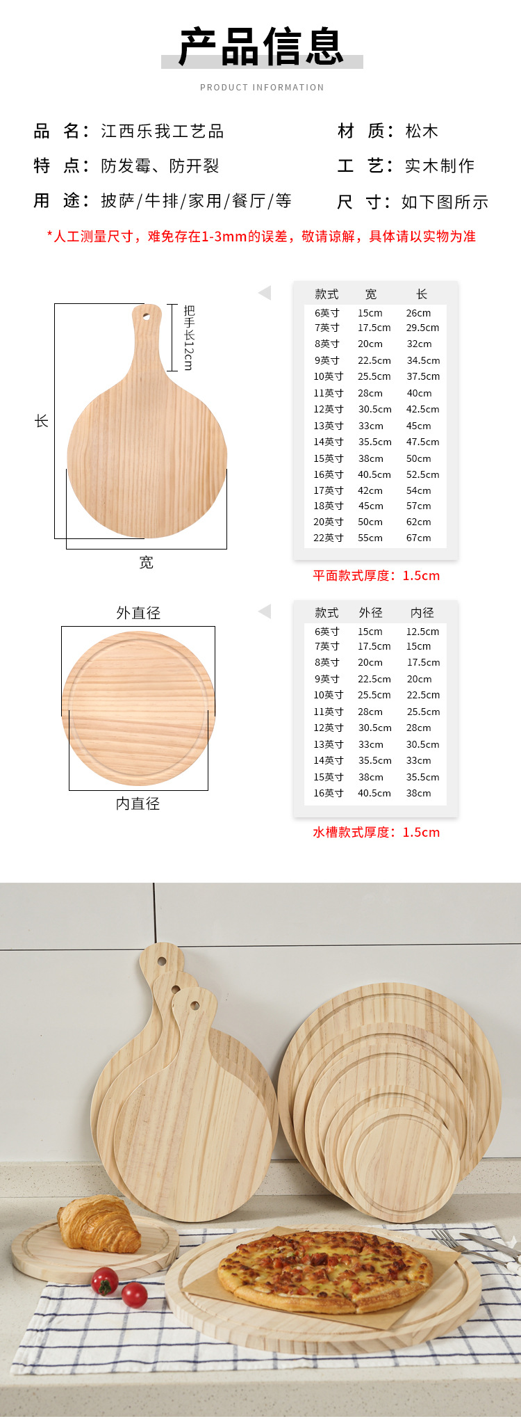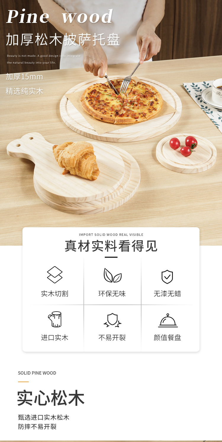 피자 접시 나무 트레이 라운드 일본식 가정용 단단한 스테이크 베이킹 및 바베큐 플레이트 케이크 보드 트레이스토어 가기