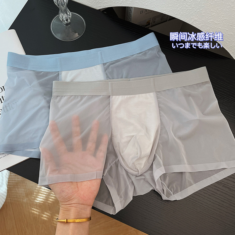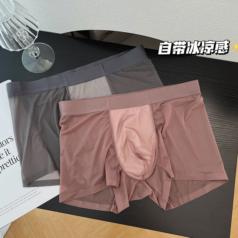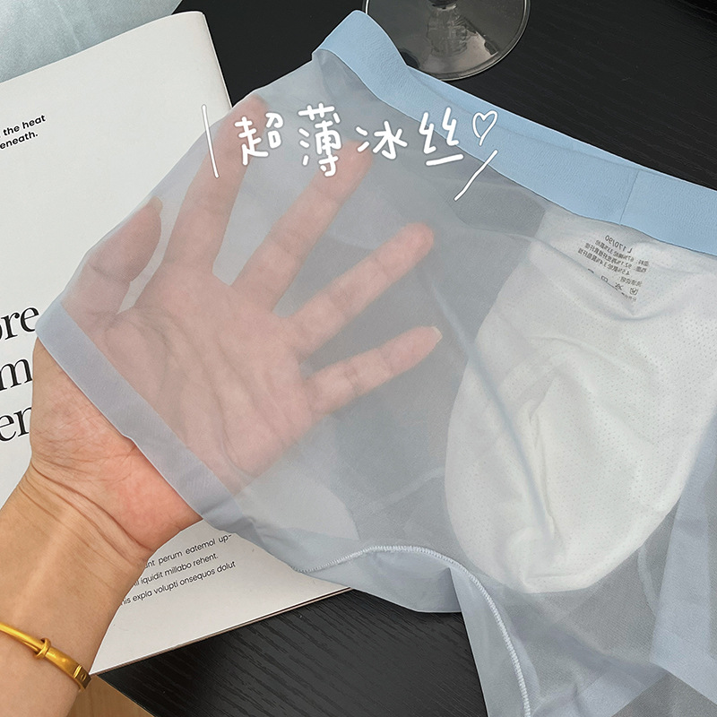 여름 초박형 심리스 아이스 실크 남자 속옷 소년 사각 속건 시원한 느슨한 통기성 플러스 사이즈 사각