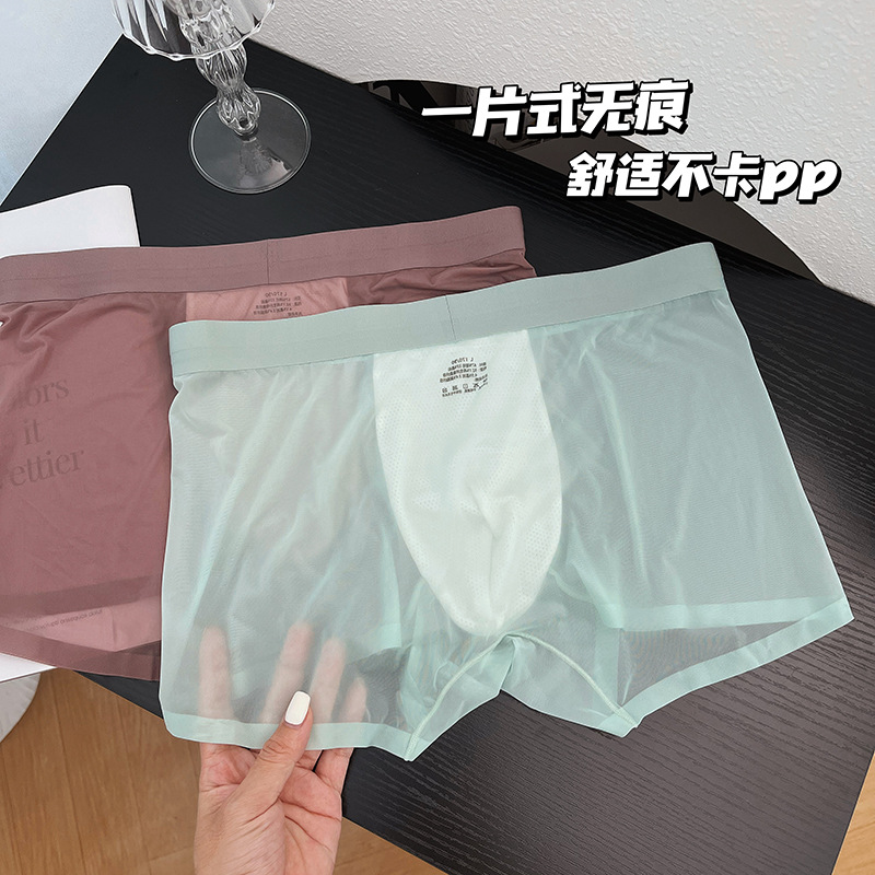 여름 초박형 심리스 아이스 실크 남자 속옷 소년 사각 속건 시원한 느슨한 통기성 플러스 사이즈 사각스토어 가기
