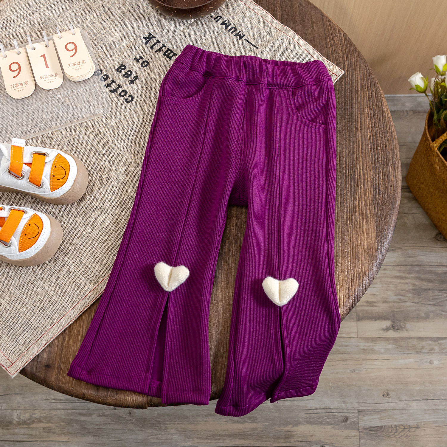2024 가을 신상 여아 아동 나팔바지 한국 스타일 세련된 드레이프 슬릿 디자인 봄 가을용 벨벳 바지