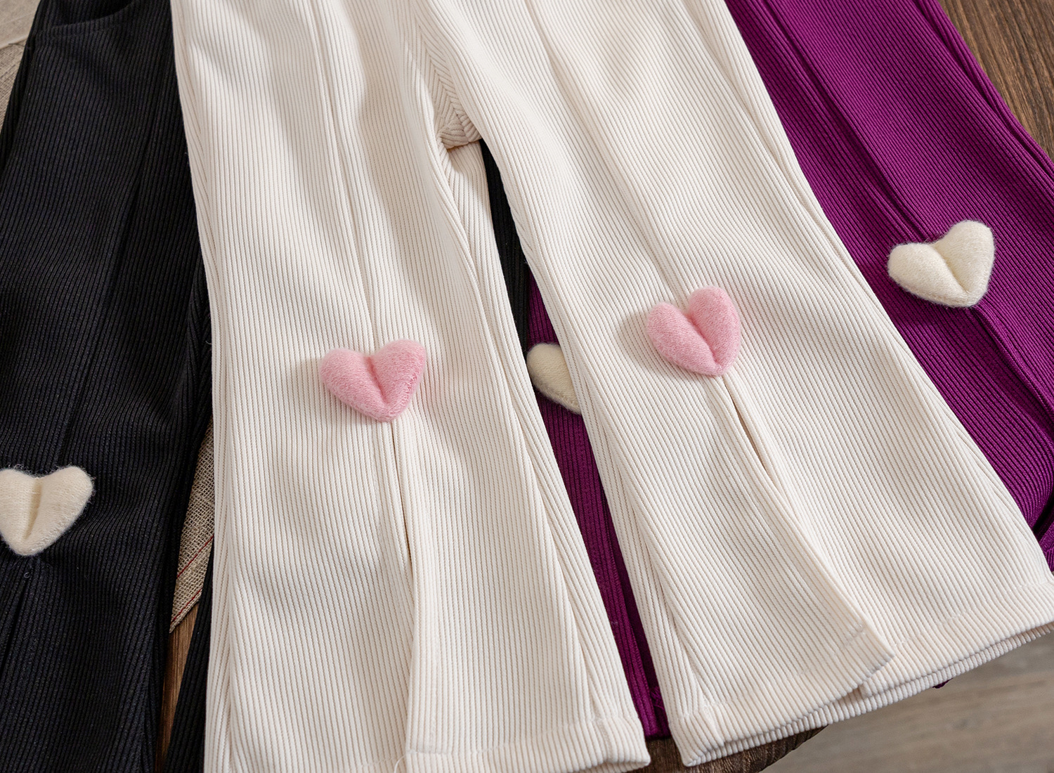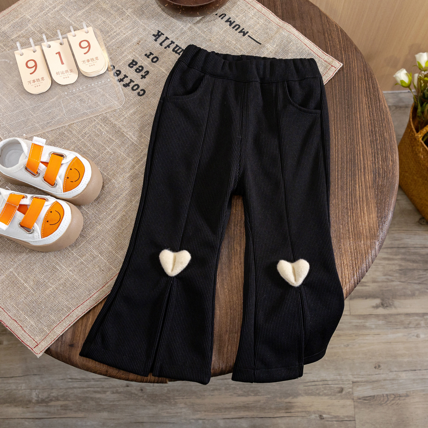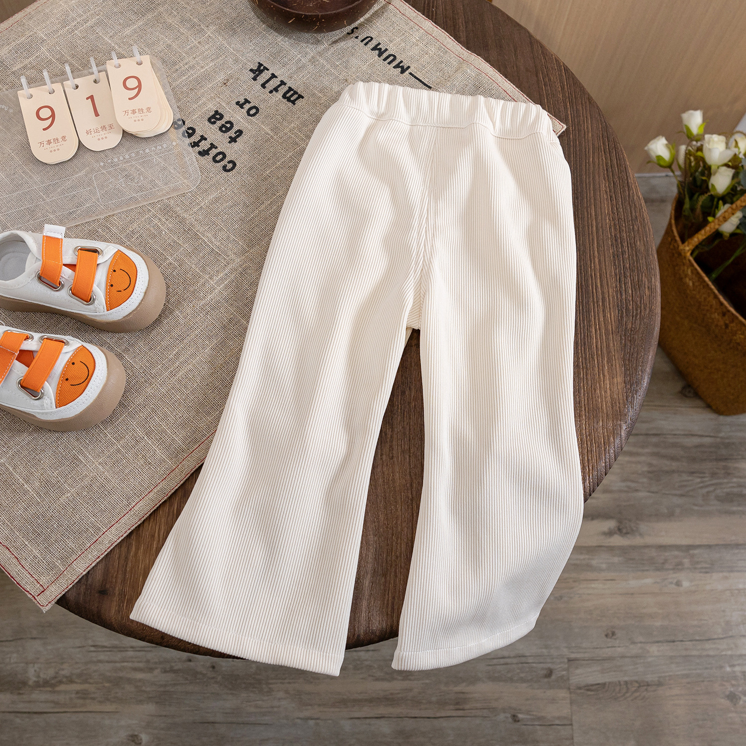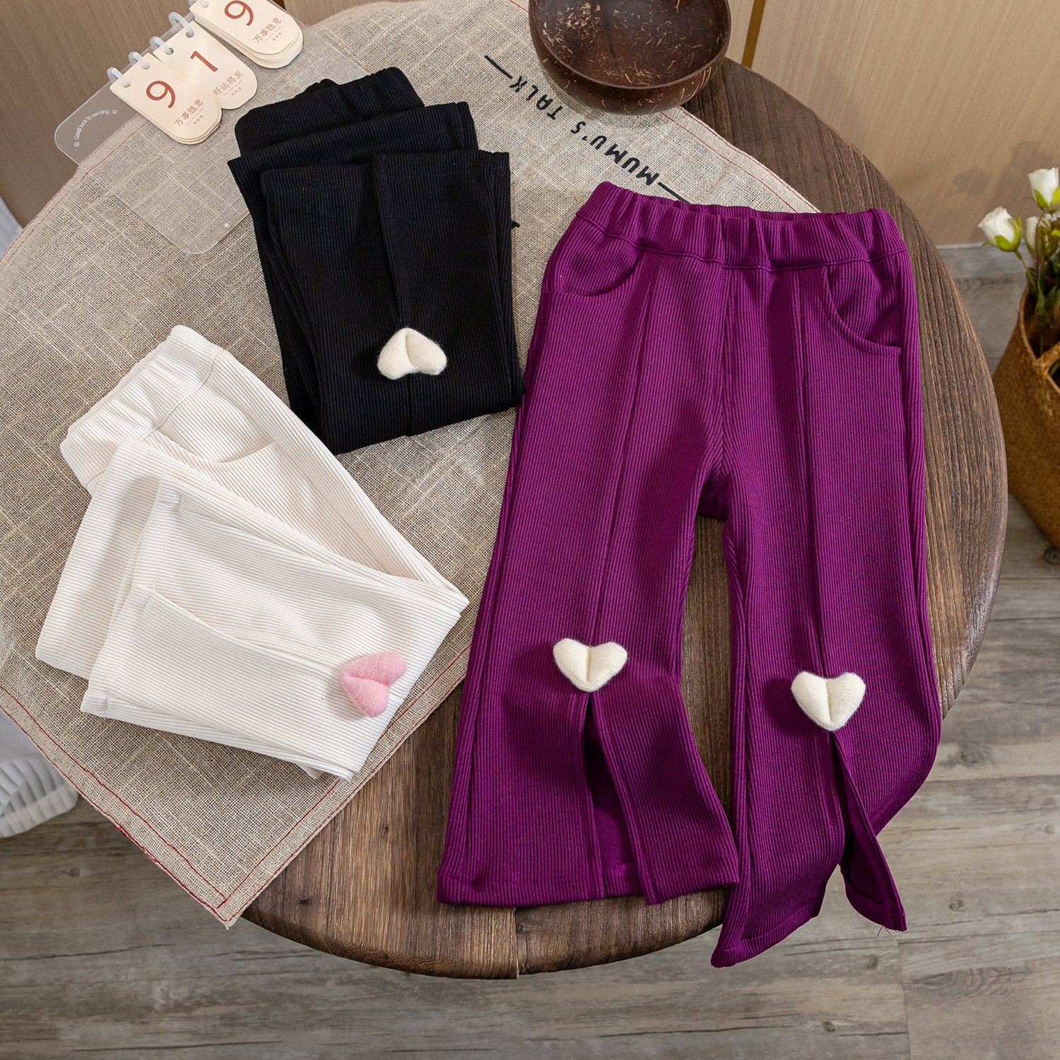 2024 가을 신상 여아 아동 나팔바지 한국 스타일 세련된 드레이프 슬릿 디자인 봄 가을용 벨벳 바지스토어 가기