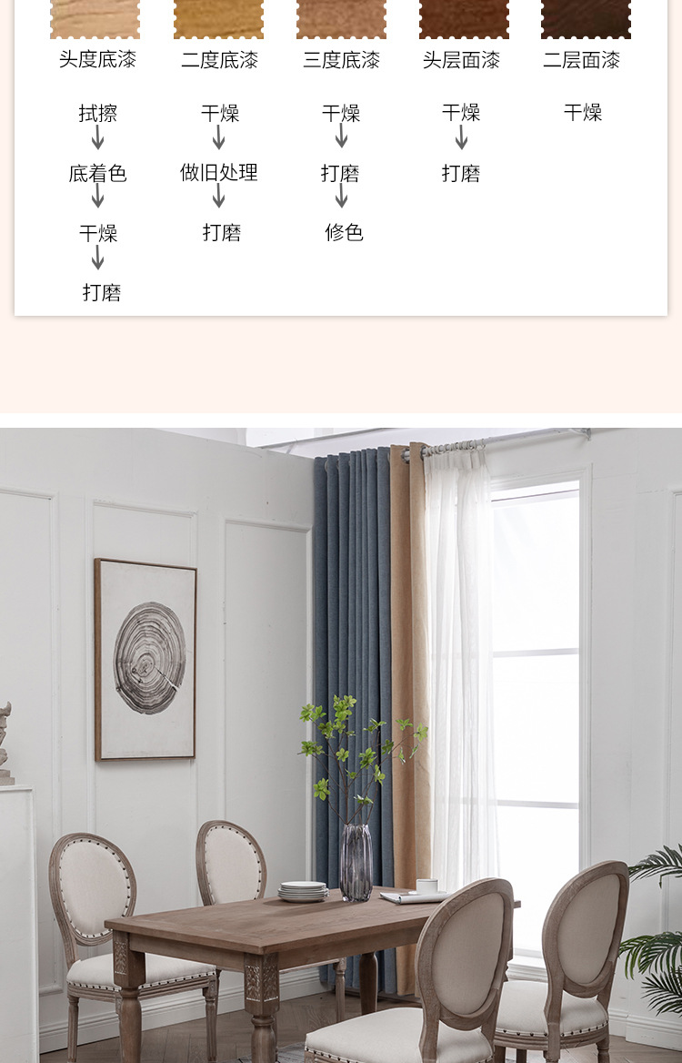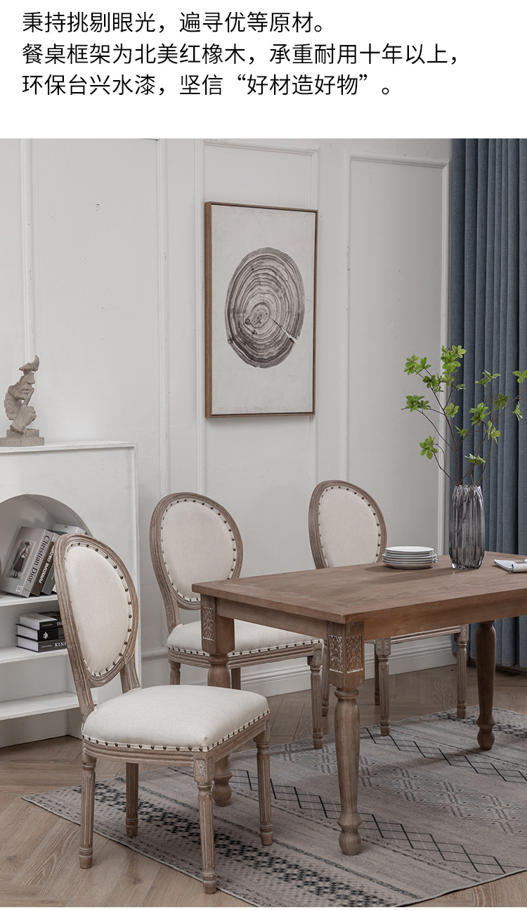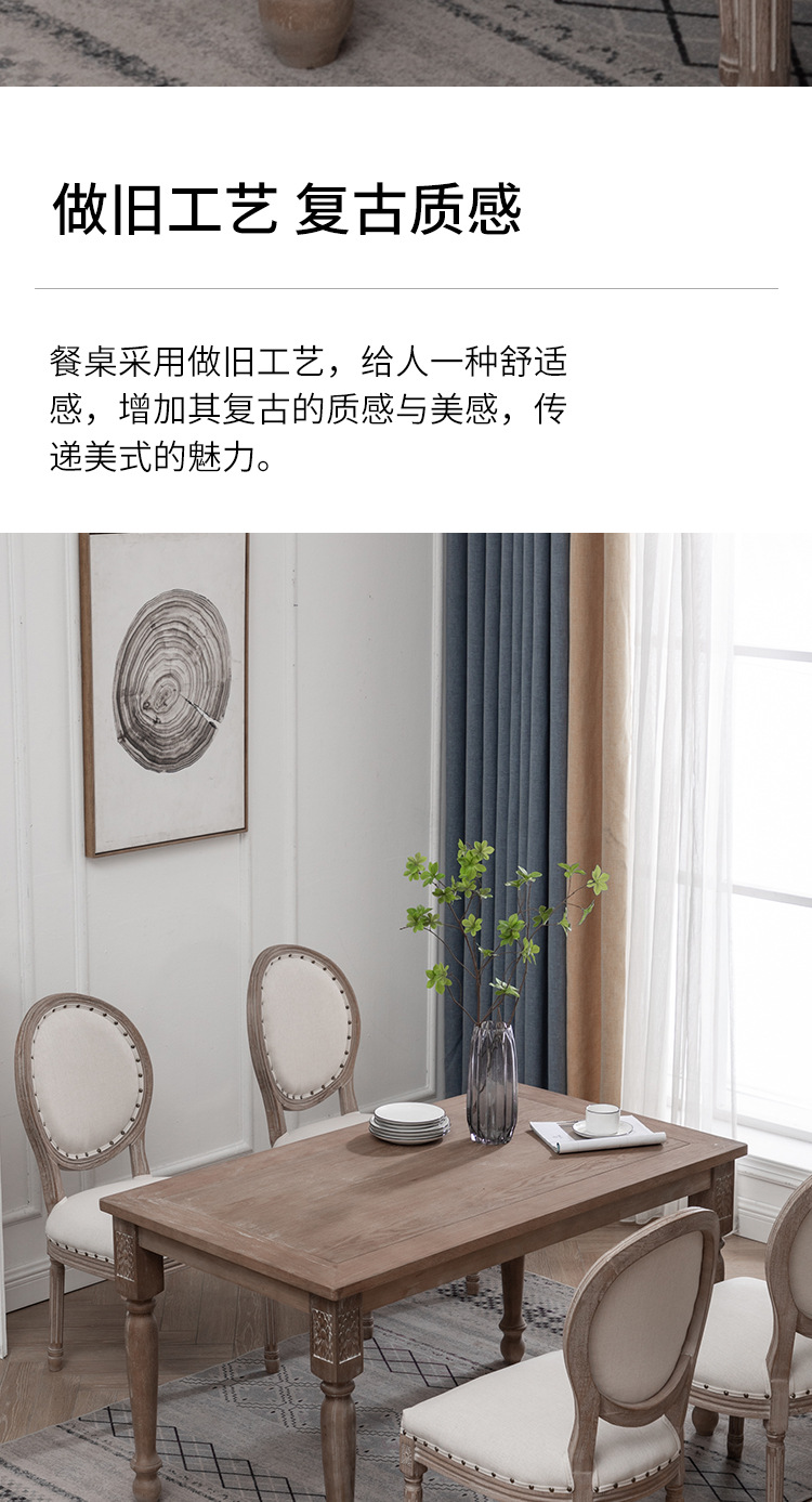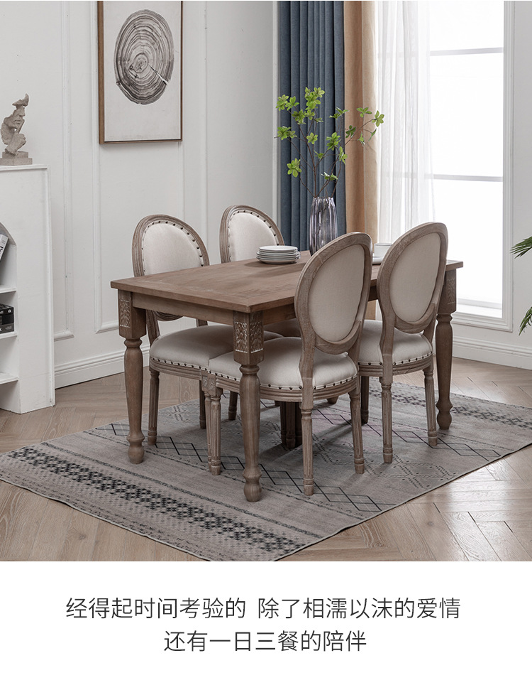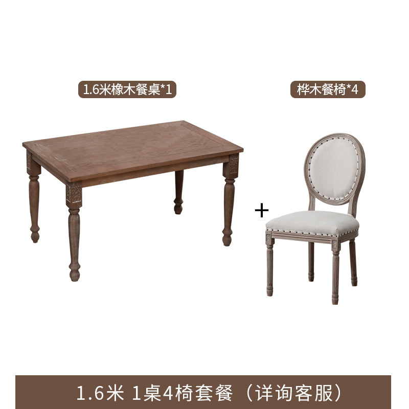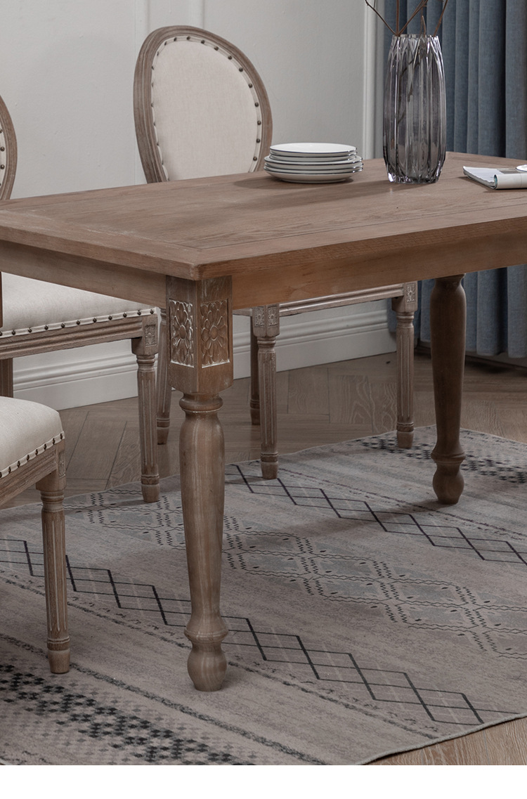 컨트리 테이블과 식탁을위한 프랑스 커피 단단한 나무 오래된 빈티지 스퀘어 오크 미국 조각 직사각형 테이블과 의자 홈스토어 가기