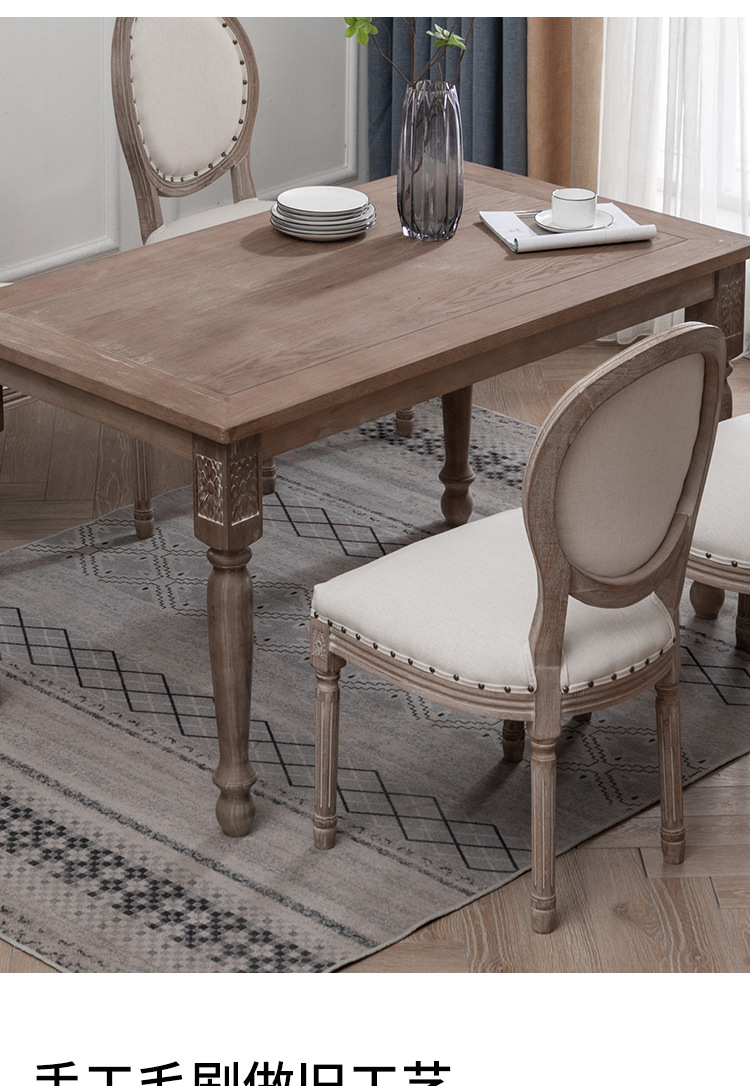 컨트리 테이블과 식탁을위한 프랑스 커피 단단한 나무 오래된 빈티지 스퀘어 오크 미국 조각 직사각형 테이블과 의자 홈
