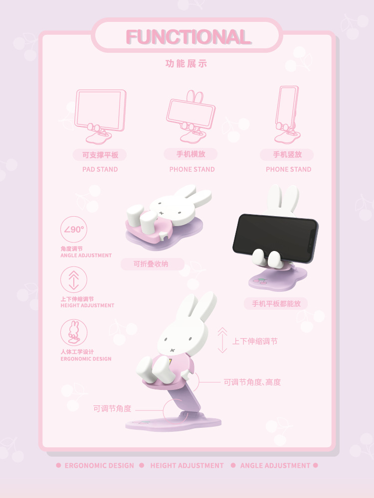 미피 미피 토끼 접이식 스탠드 블라인드 박스 추격 플레이 라이브 데스크탑 휴대 전화 조정 가능한 텔레스코픽 게으른 스탠드스토어 가기