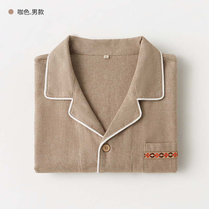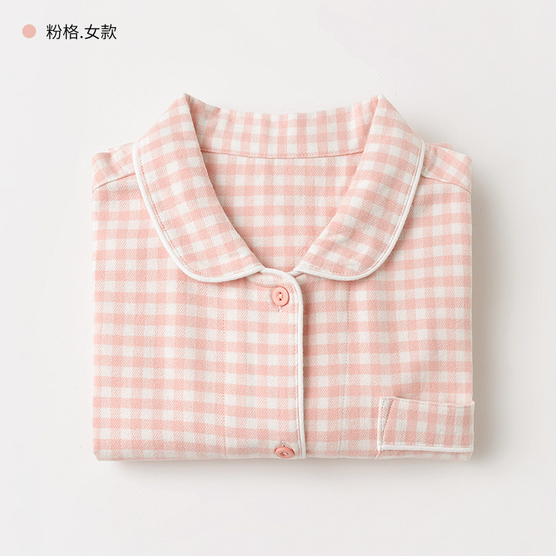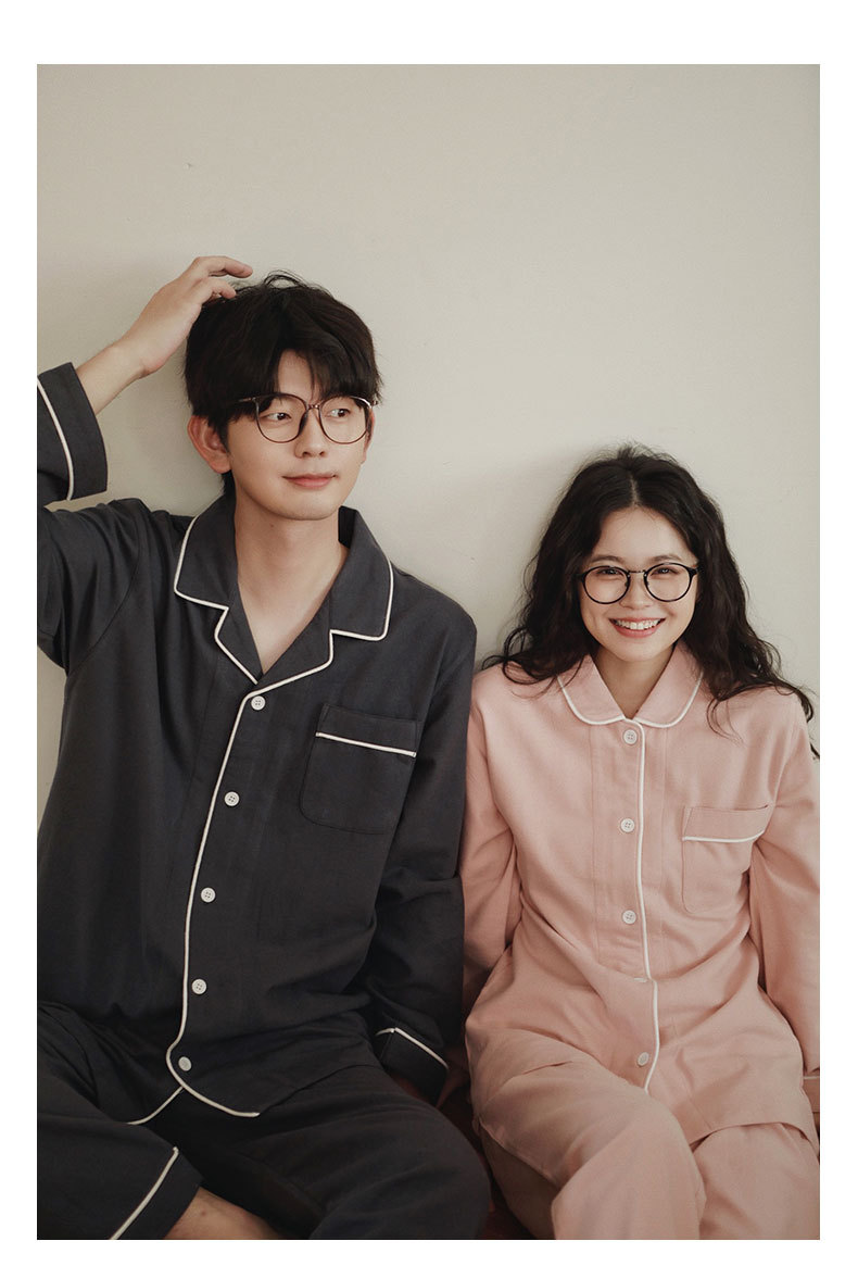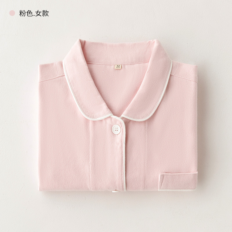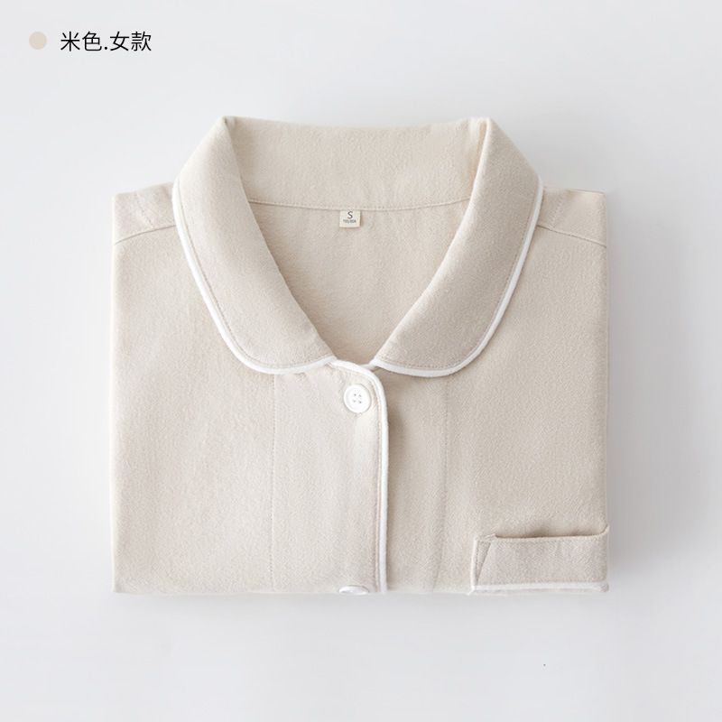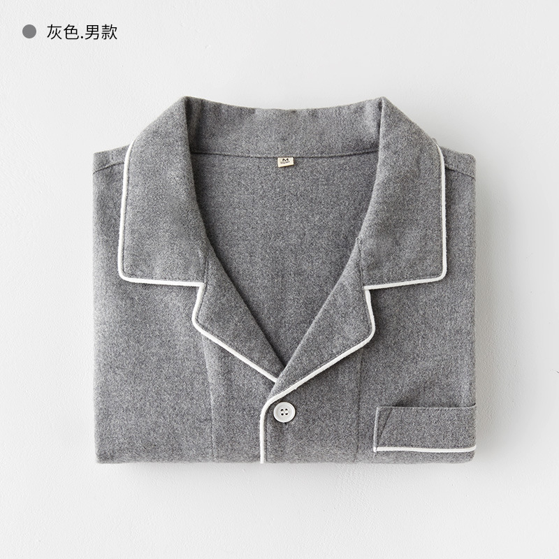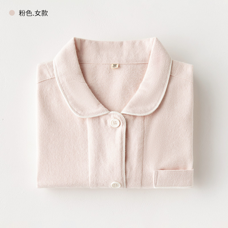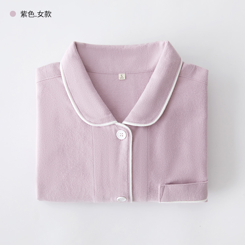 봄과 가을 여성용 무인쇄 커플 잠옷 순수 코튼 기모 벨벳 가을, 겨울 두꺼운 코튼 긴팔 홈웨어 남성용 대형 사이즈