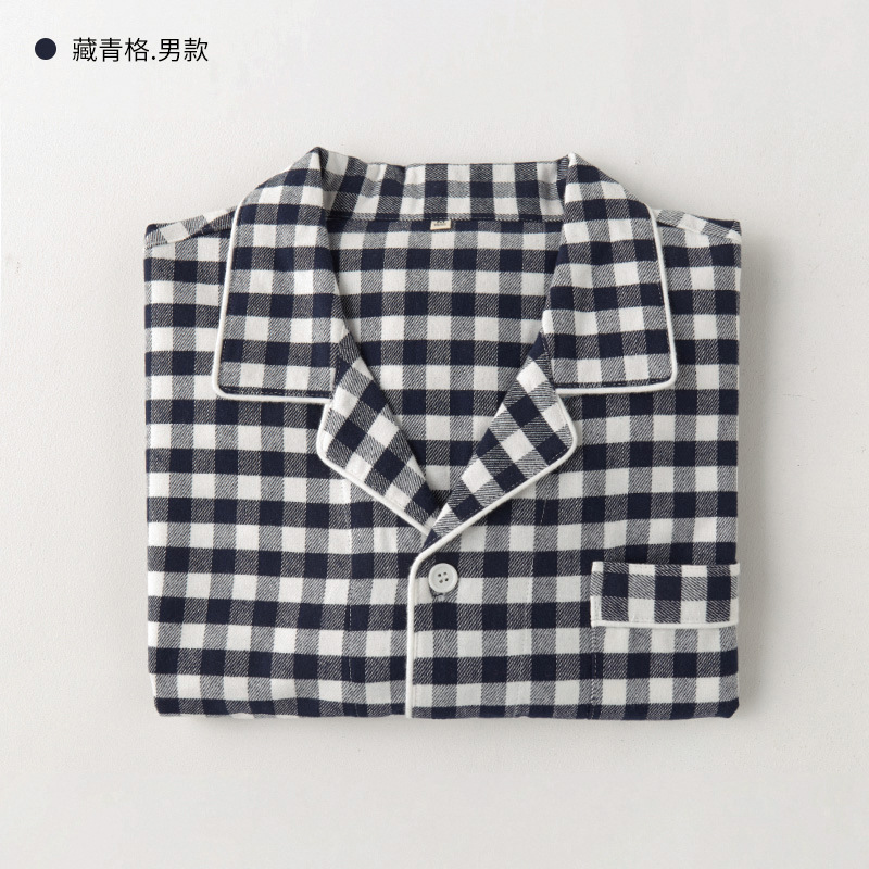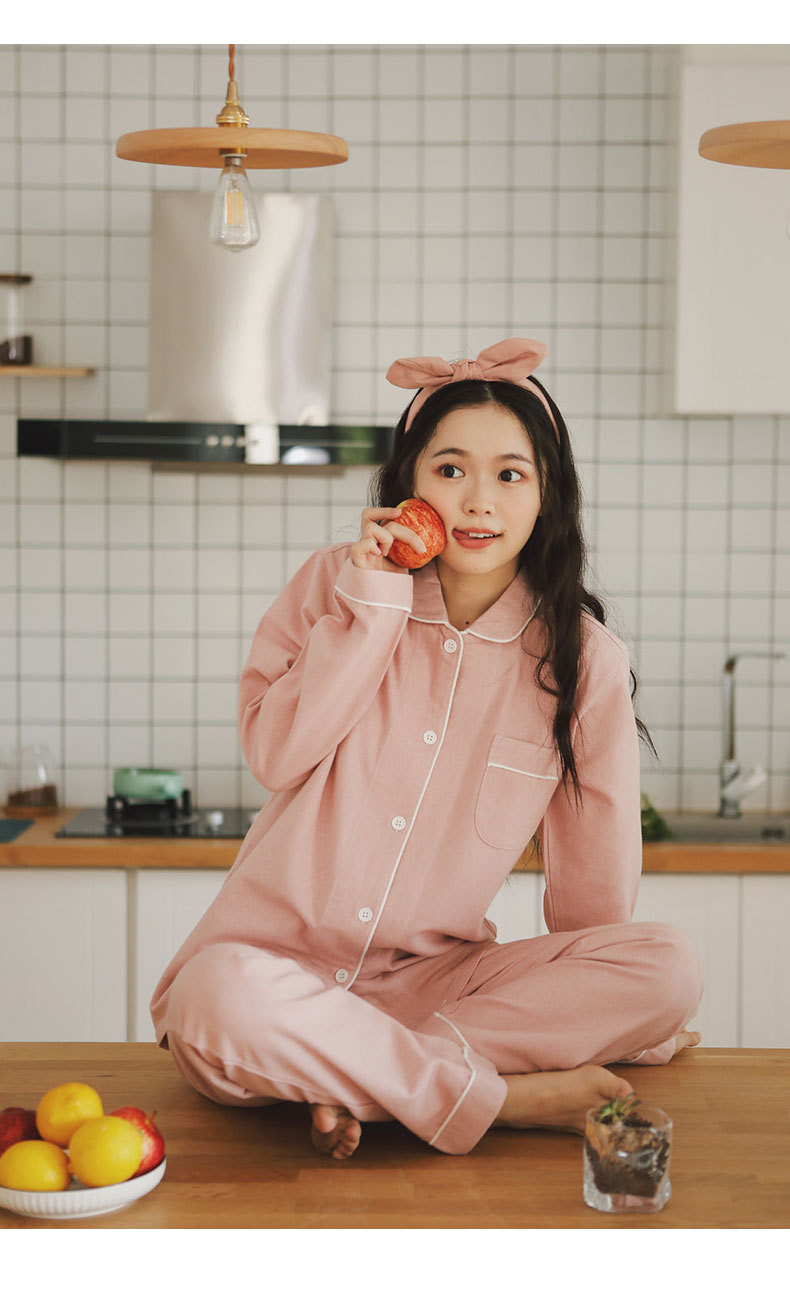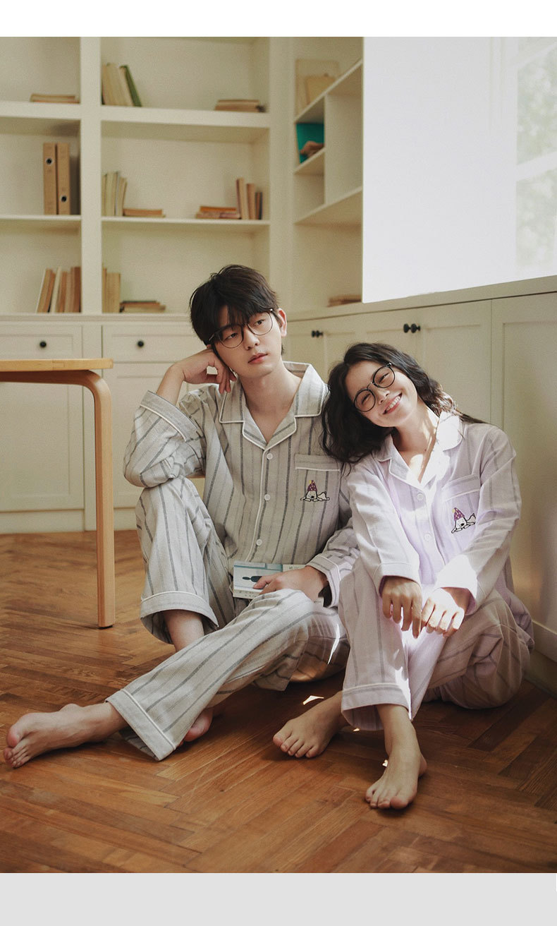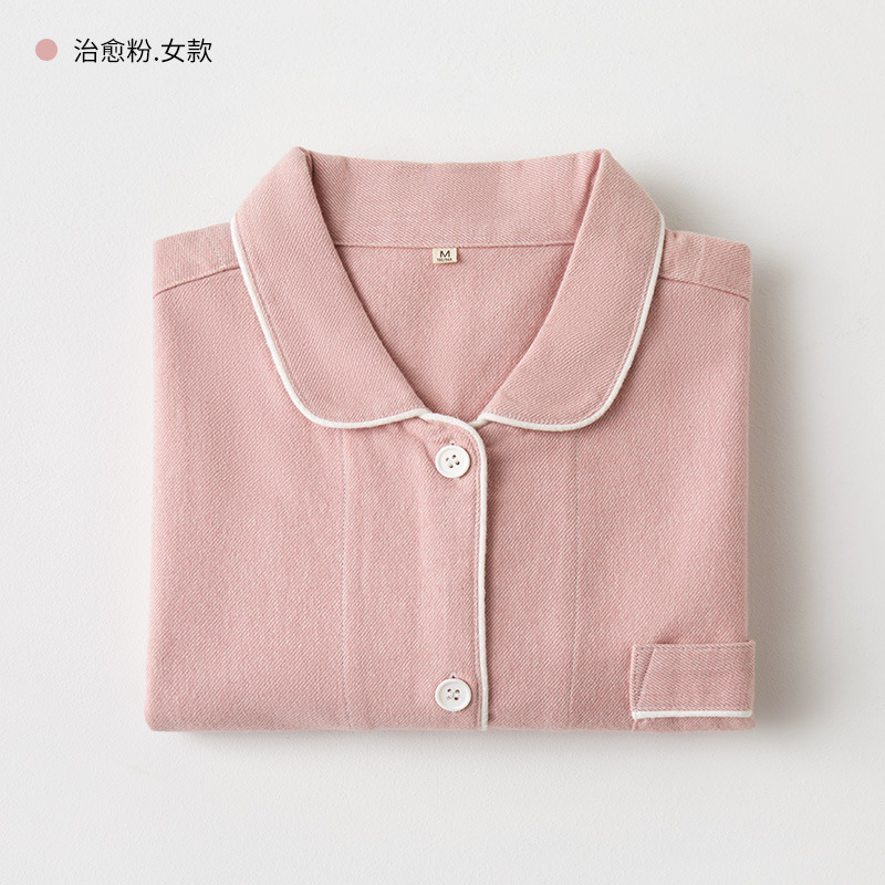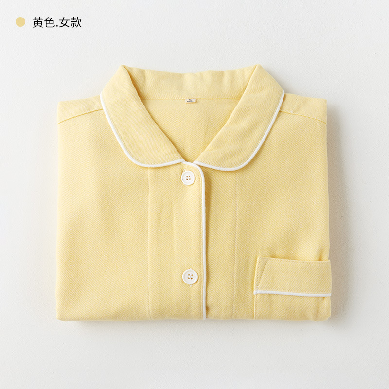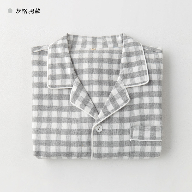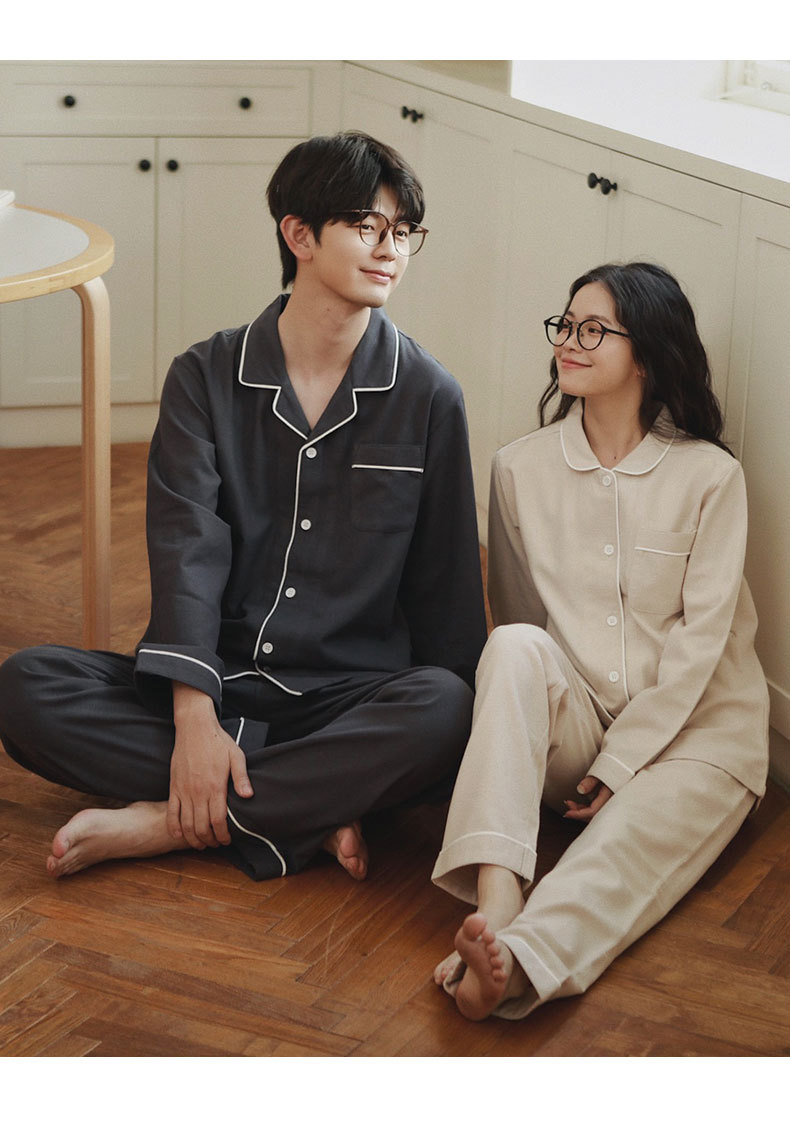 봄과 가을 여성용 무인쇄 커플 잠옷 순수 코튼 기모 벨벳 가을, 겨울 두꺼운 코튼 긴팔 홈웨어 남성용 대형 사이즈