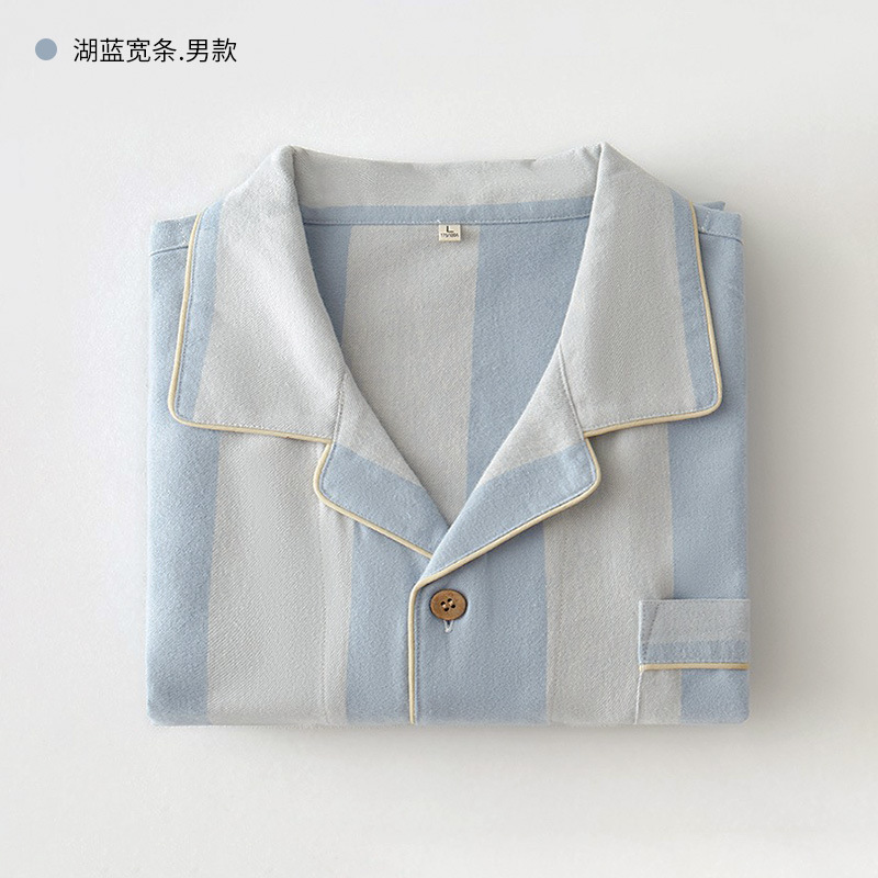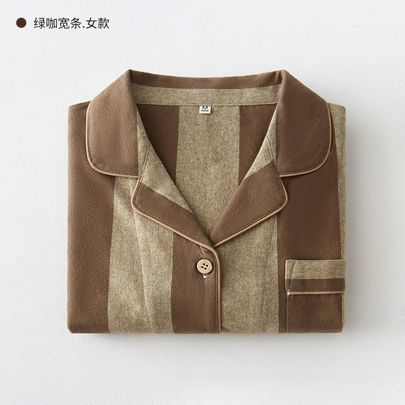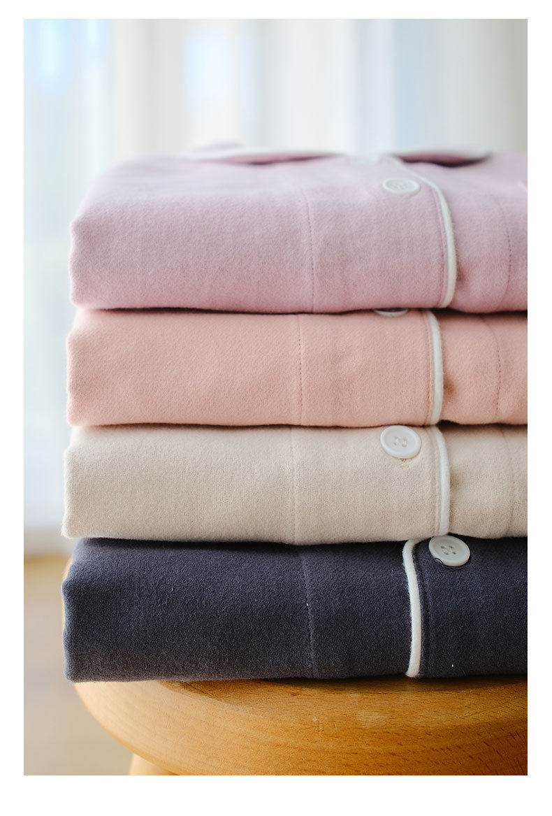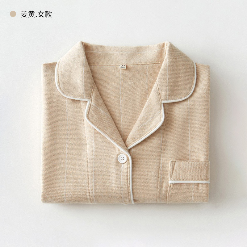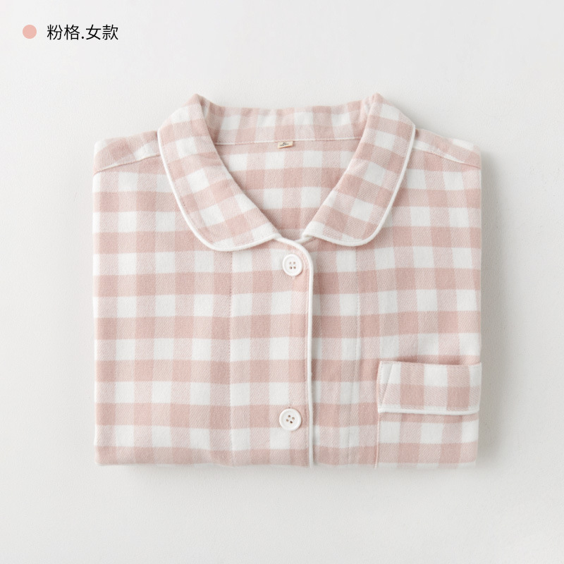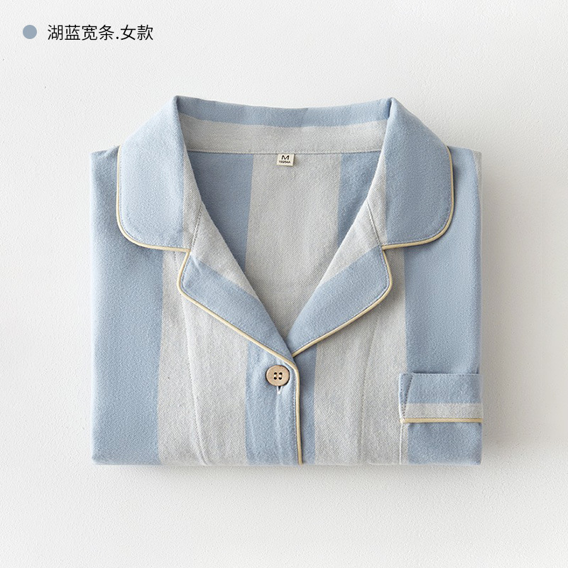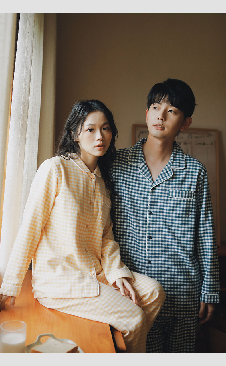 봄과 가을 여성용 무인쇄 커플 잠옷 순수 코튼 기모 벨벳 가을, 겨울 두꺼운 코튼 긴팔 홈웨어 남성용 대형 사이즈