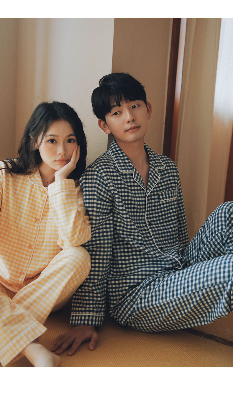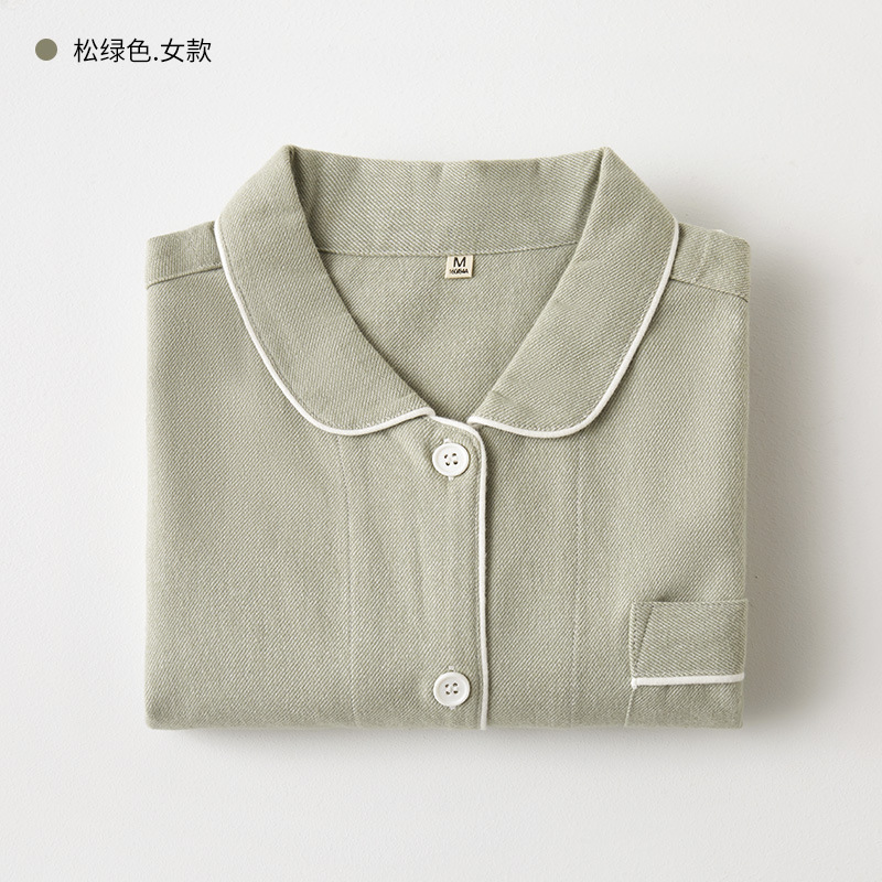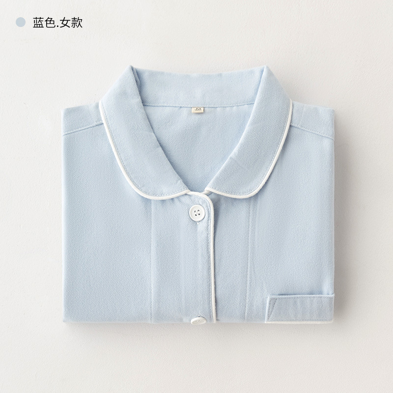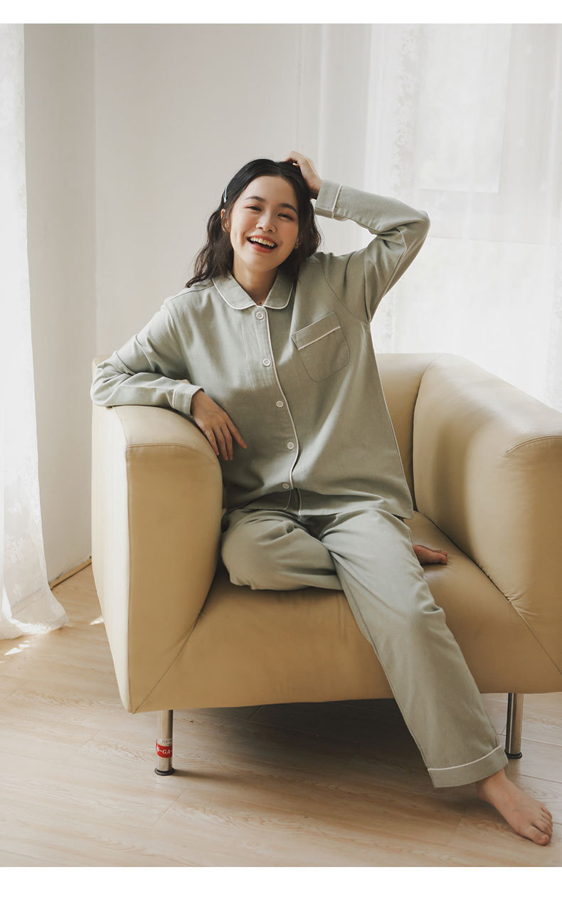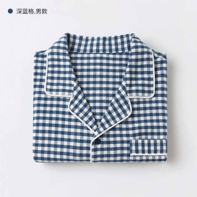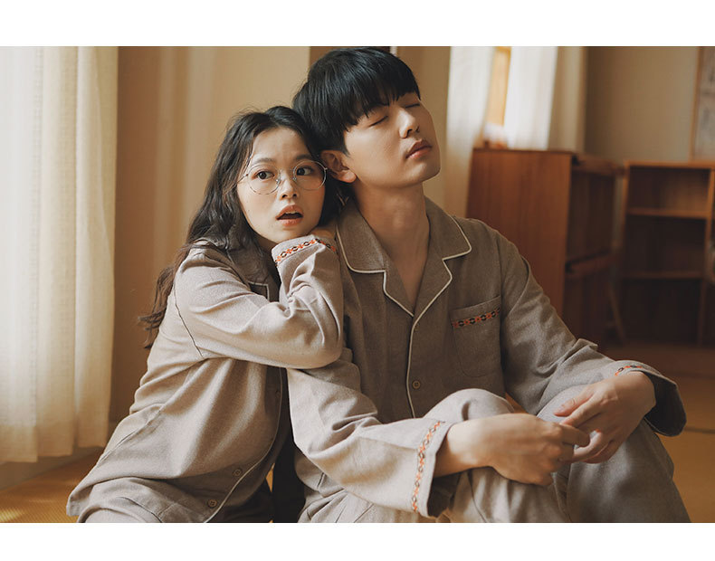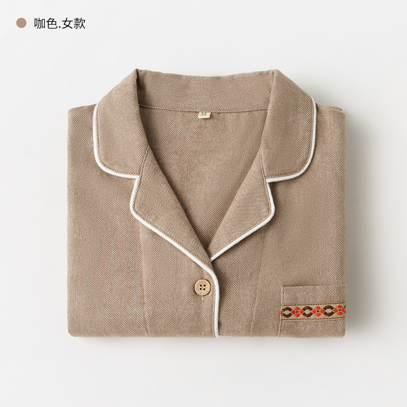 봄과 가을 여성용 무인쇄 커플 잠옷 순수 코튼 기모 벨벳 가을, 겨울 두꺼운 코튼 긴팔 홈웨어 남성용 대형 사이즈