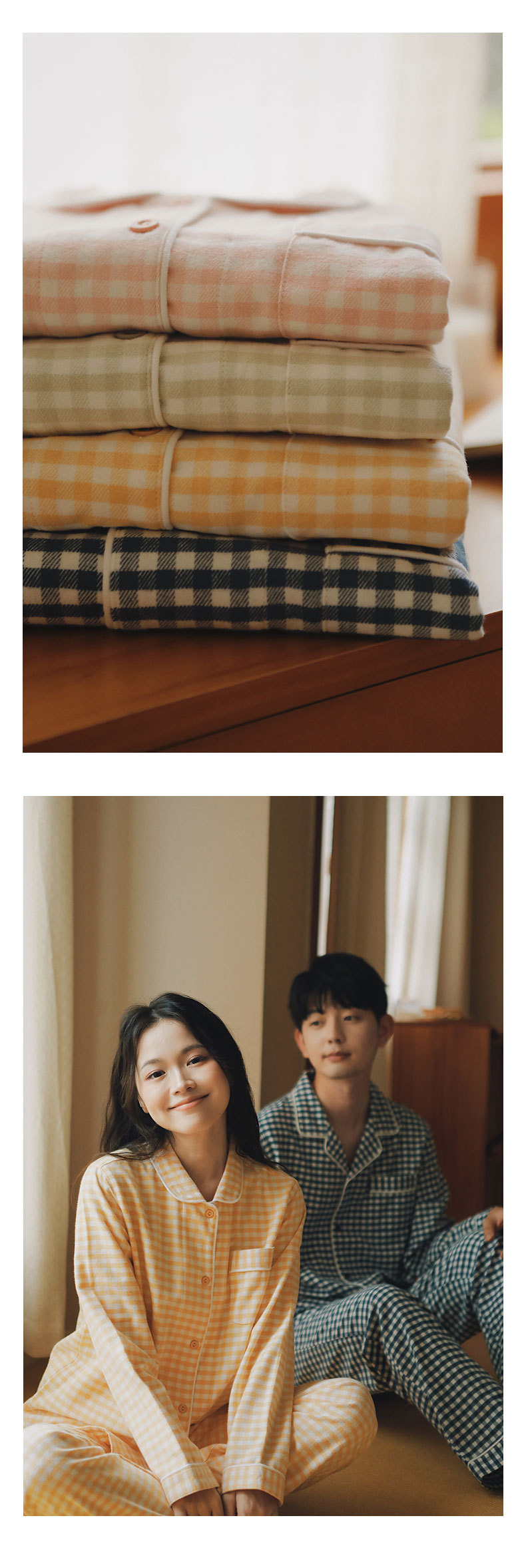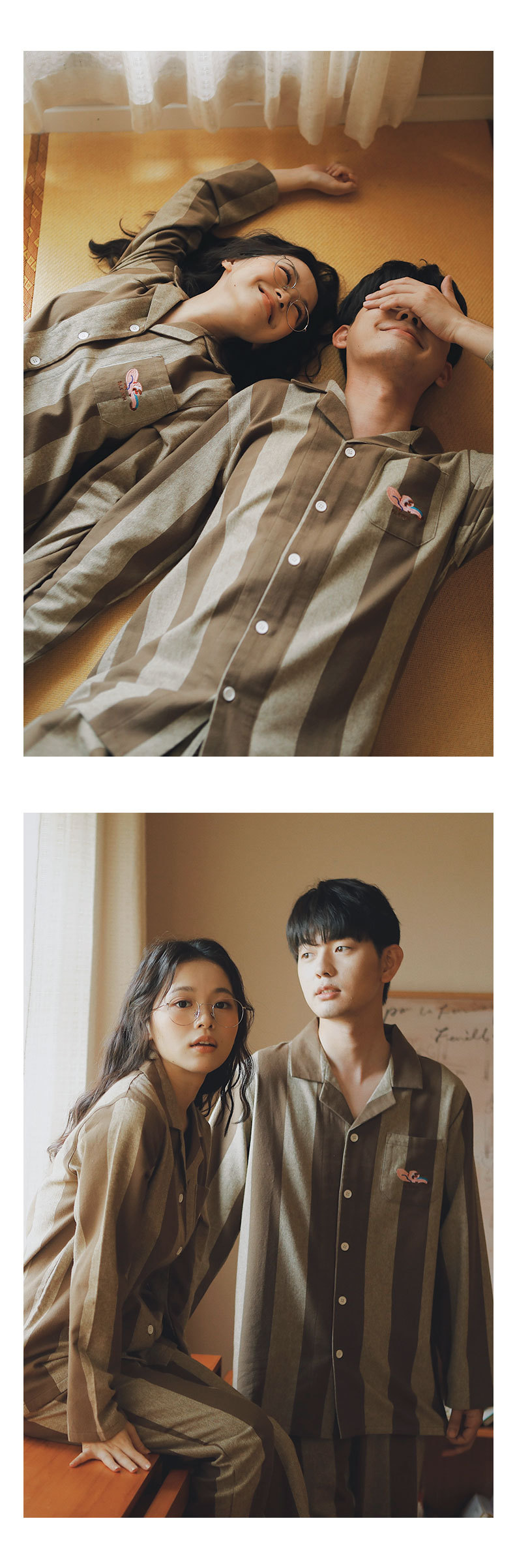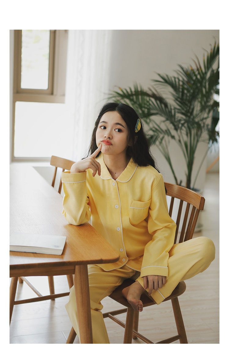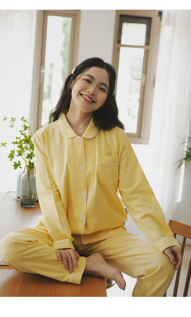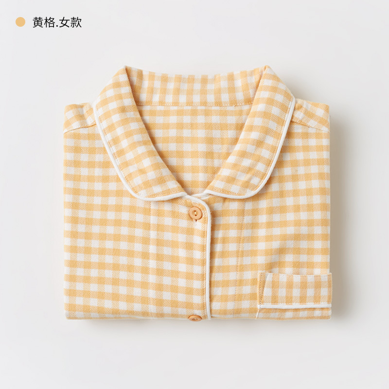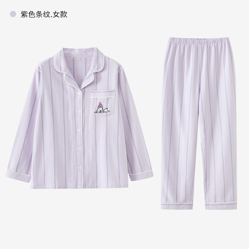 봄과 가을 여성용 무인쇄 커플 잠옷 순수 코튼 기모 벨벳 가을, 겨울 두꺼운 코튼 긴팔 홈웨어 남성용 대형 사이즈