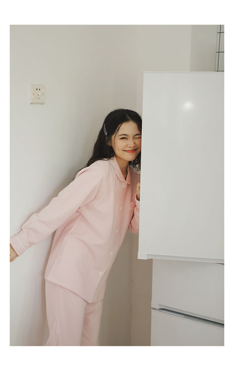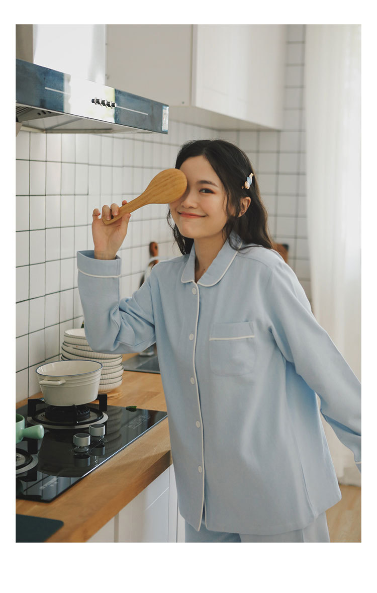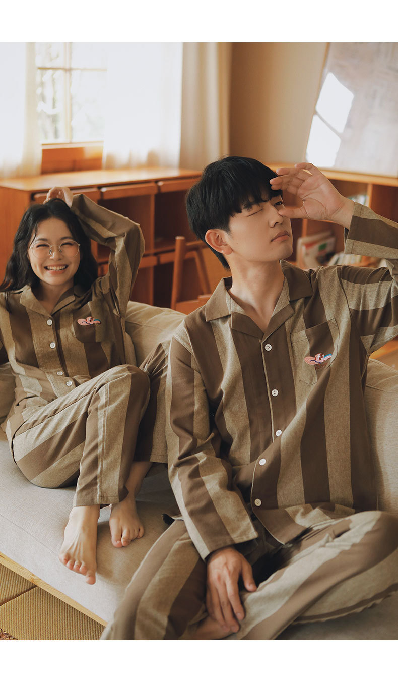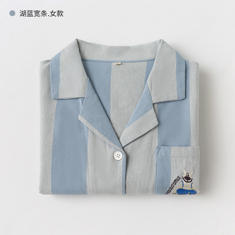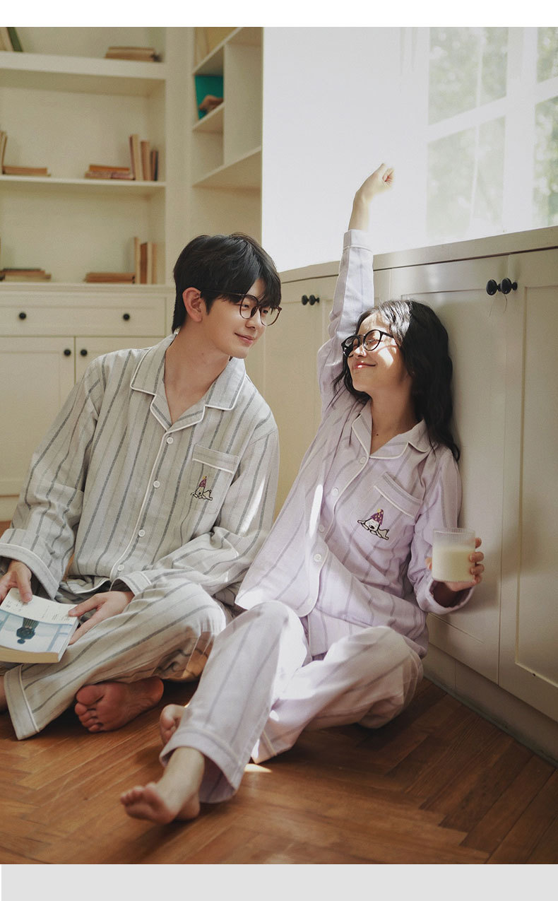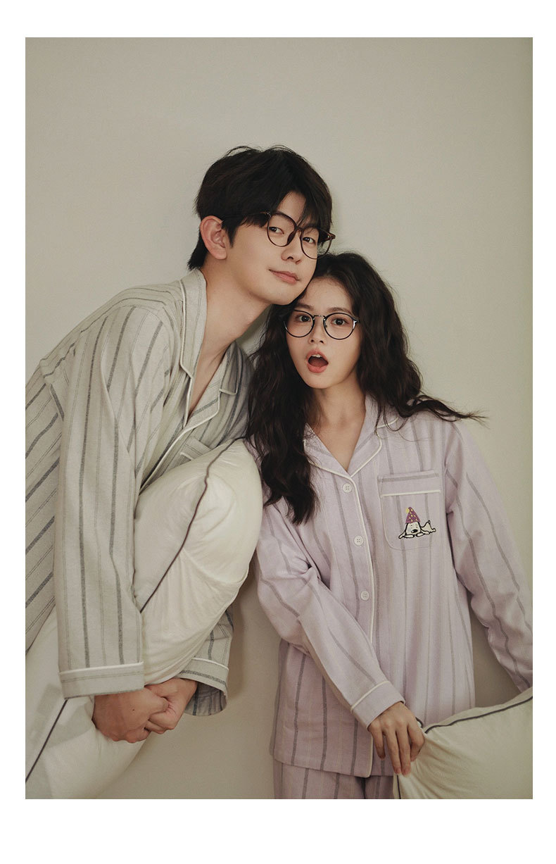 봄과 가을 여성용 무인쇄 커플 잠옷 순수 코튼 기모 벨벳 가을, 겨울 두꺼운 코튼 긴팔 홈웨어 남성용 대형 사이즈스토어 가기
