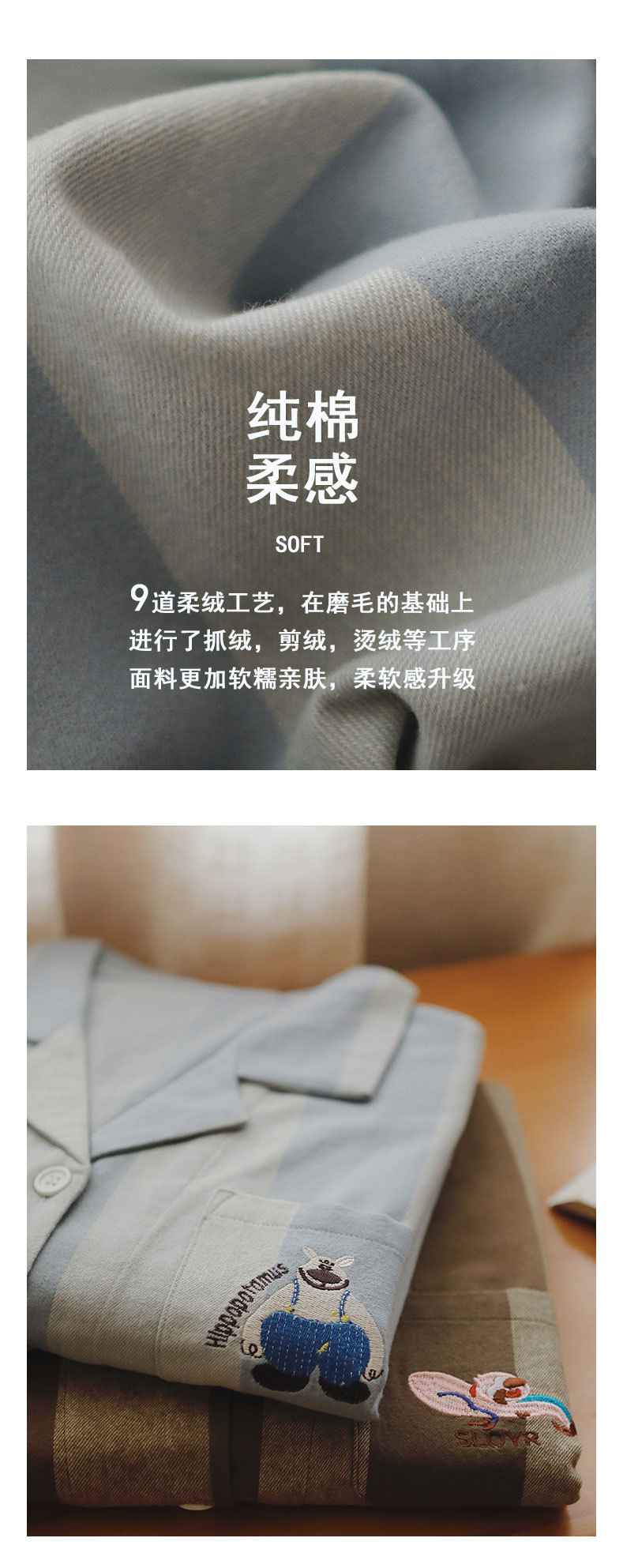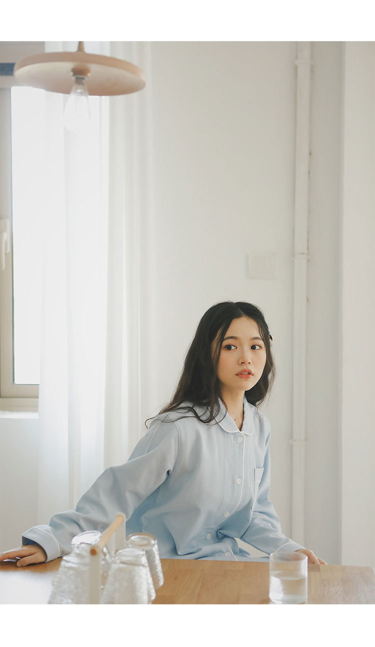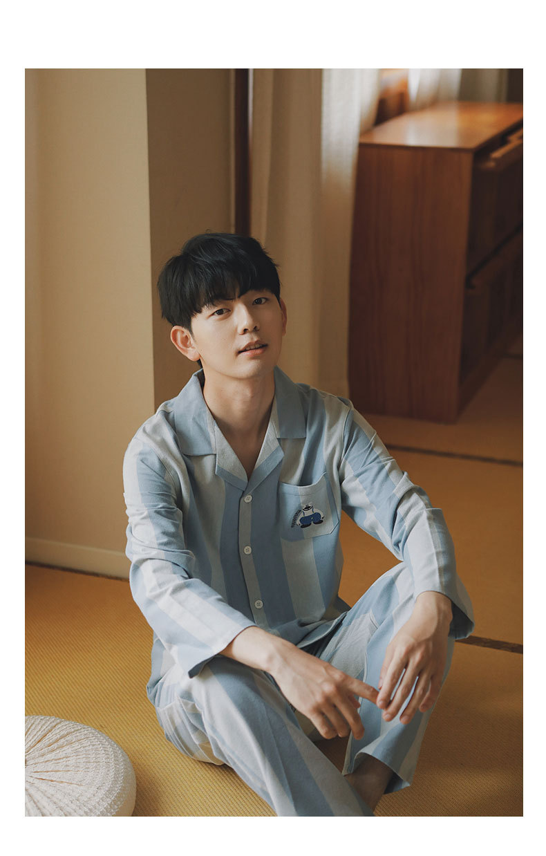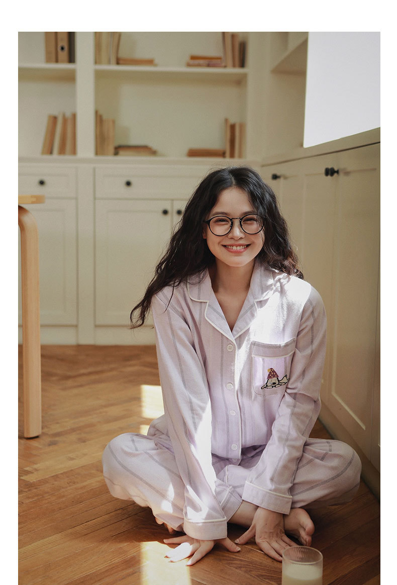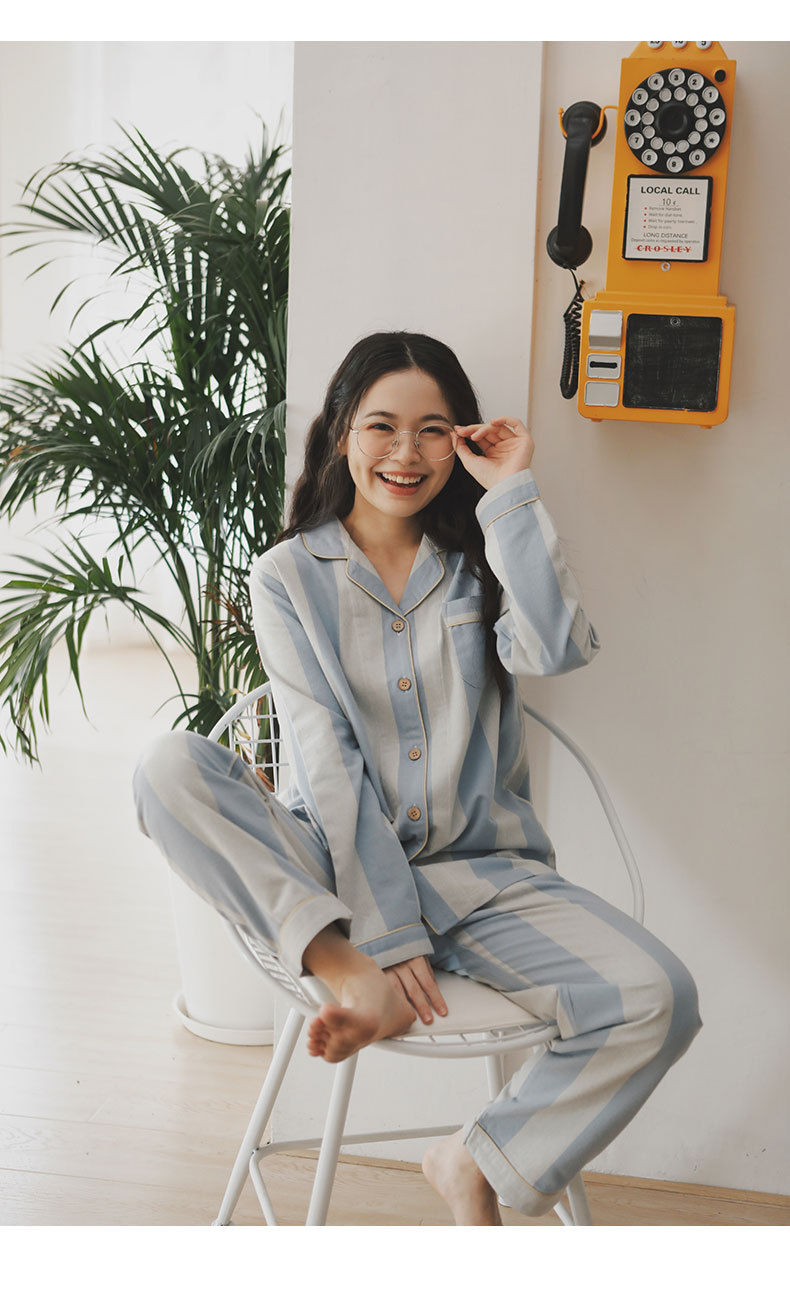 봄과 가을 여성용 무인쇄 커플 잠옷 순수 코튼 기모 벨벳 가을, 겨울 두꺼운 코튼 긴팔 홈웨어 남성용 대형 사이즈스토어 가기