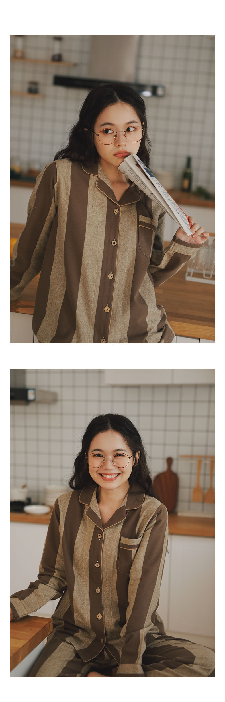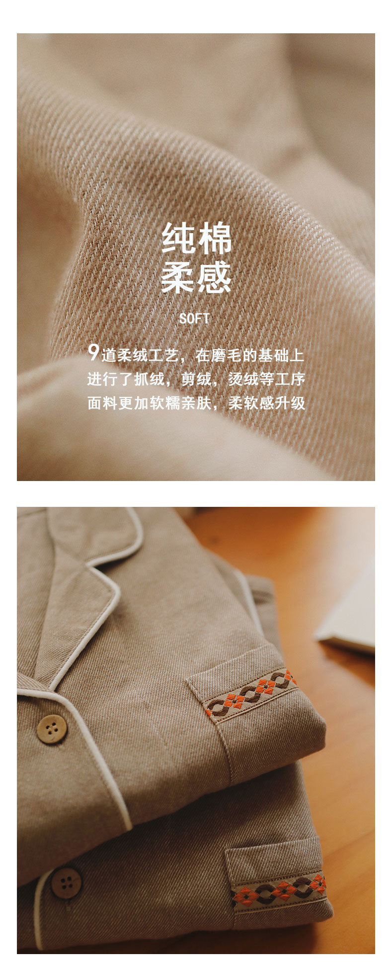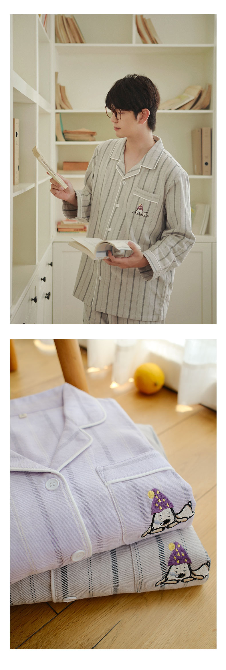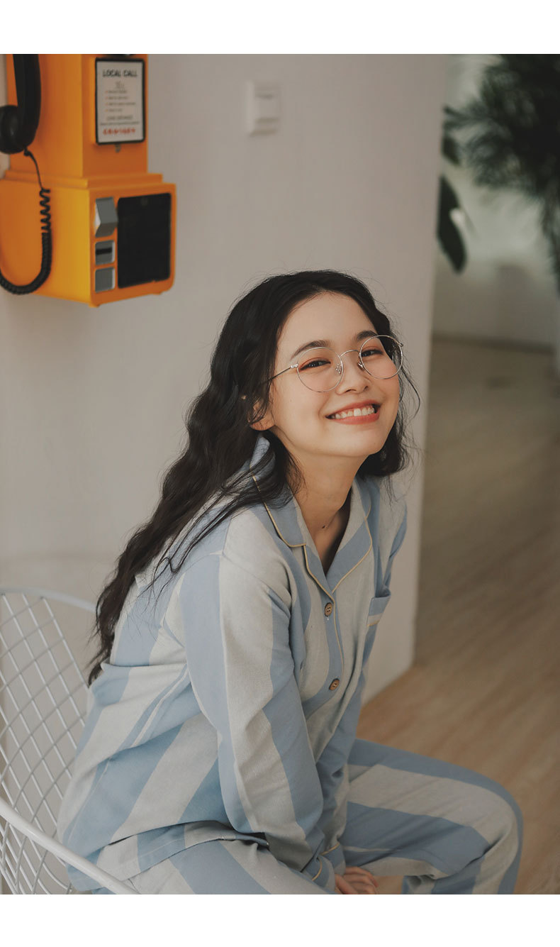 봄과 가을 여성용 무인쇄 커플 잠옷 순수 코튼 기모 벨벳 가을, 겨울 두꺼운 코튼 긴팔 홈웨어 남성용 대형 사이즈스토어 가기