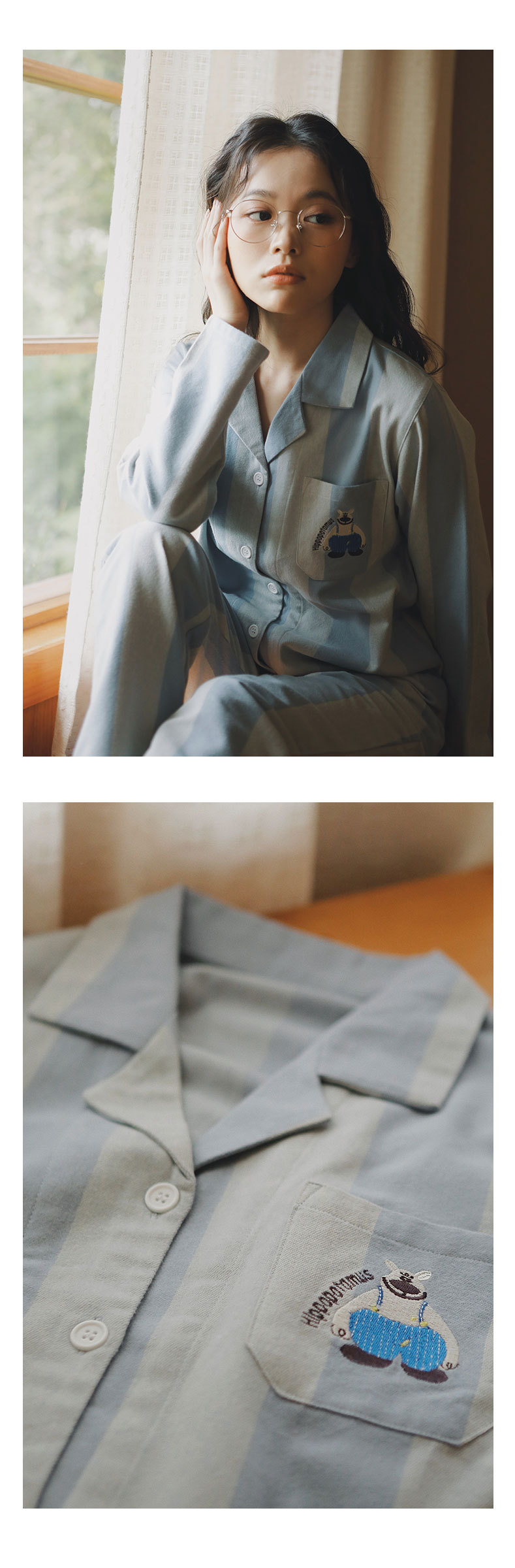 • 여성용.레이크 블루 스트라이프 자수