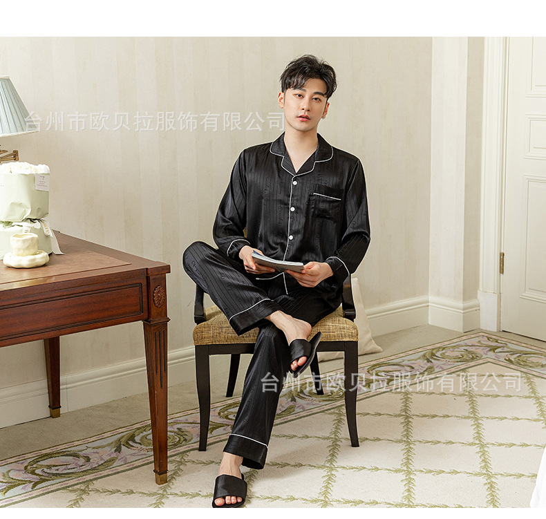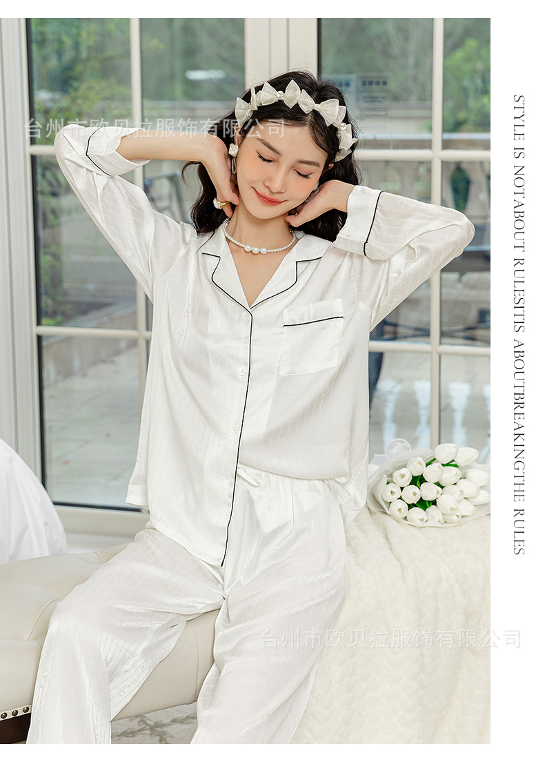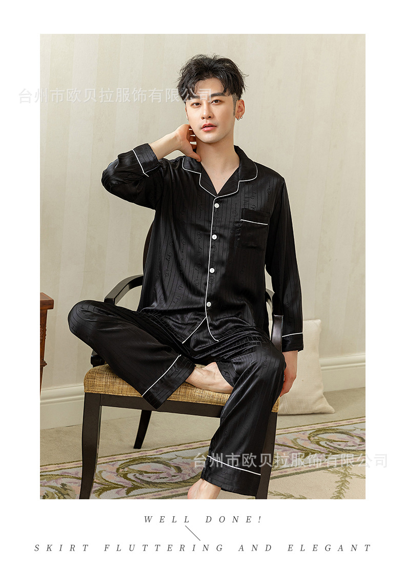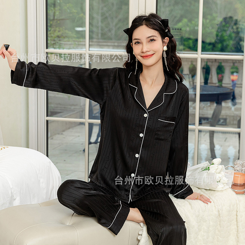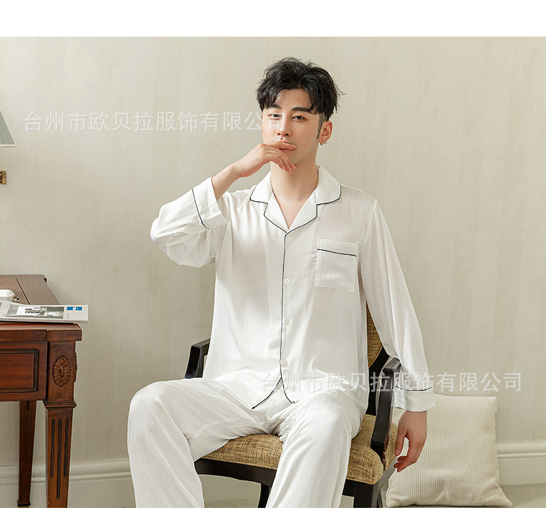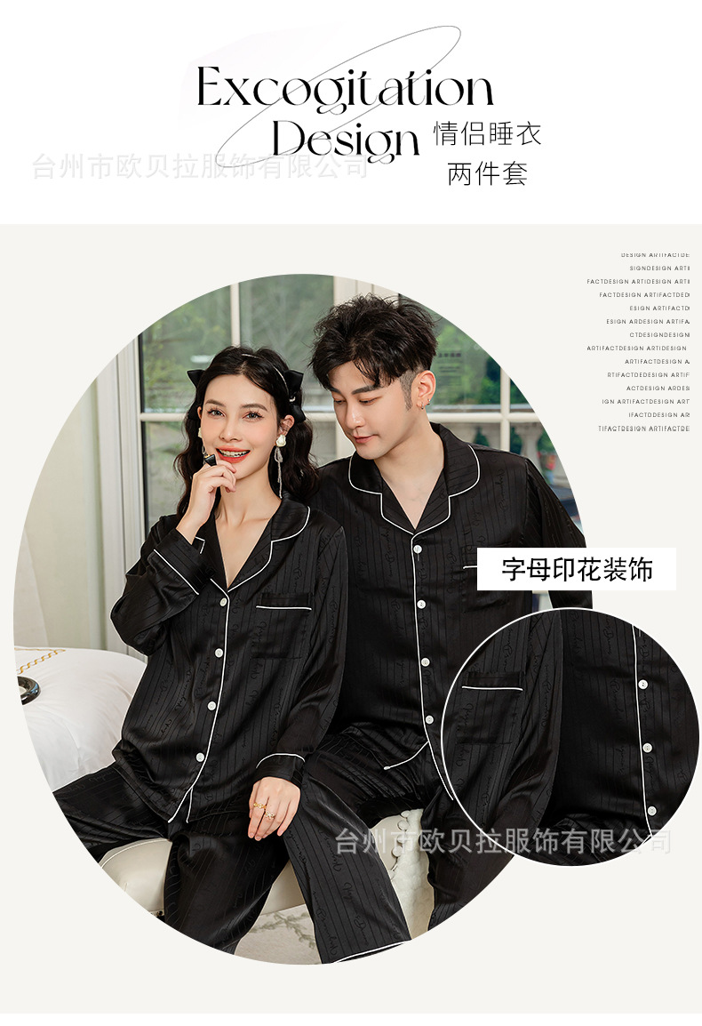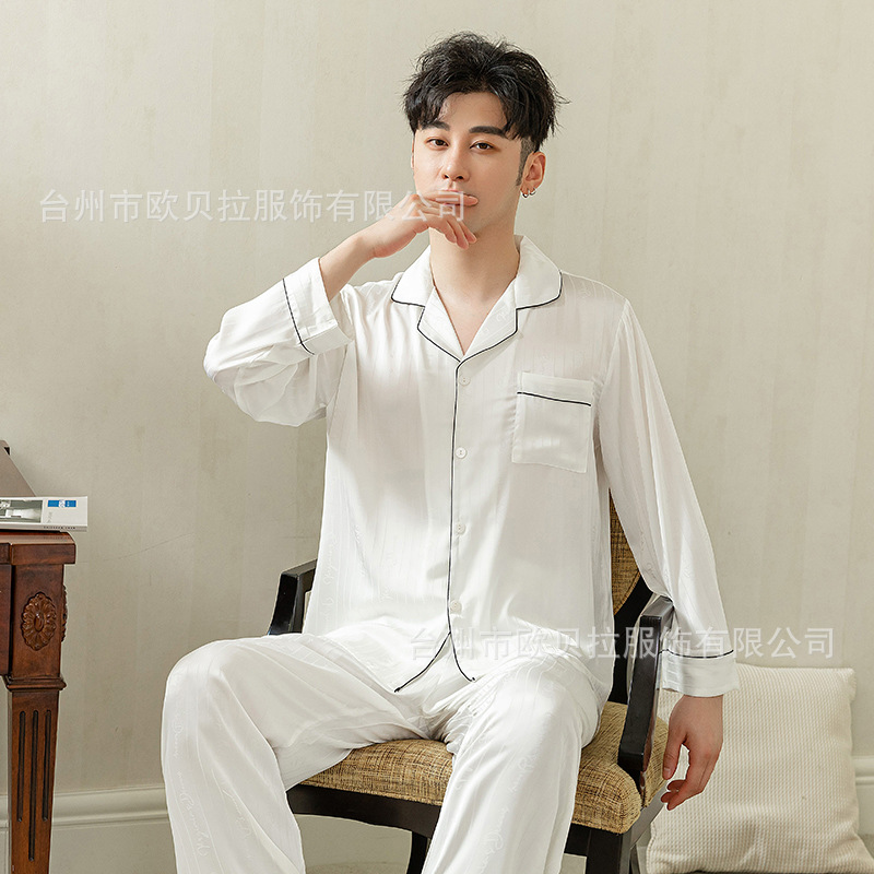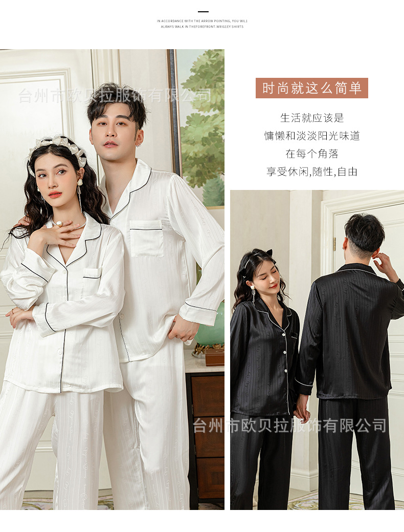 작은 빨간 책 같은 스타일 커플 잠옷 여자의 봄과 가을 자카드 얼음 실크 긴 소매 얇은 옷깃 남자의 가정 의류 도매스토어 가기