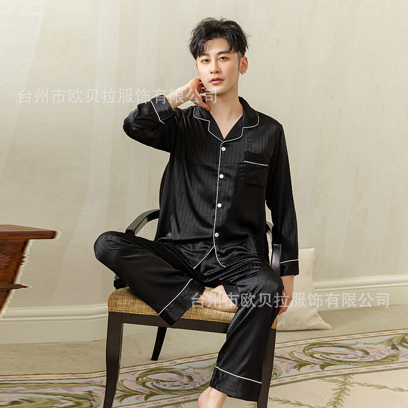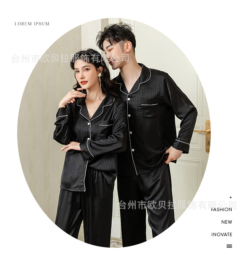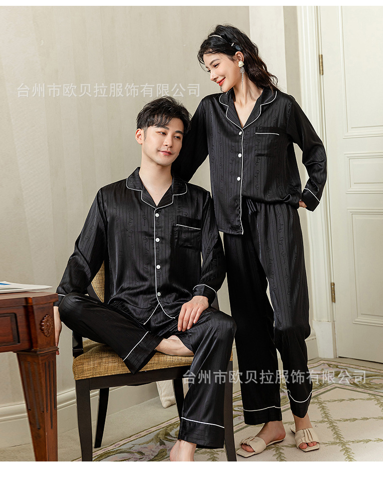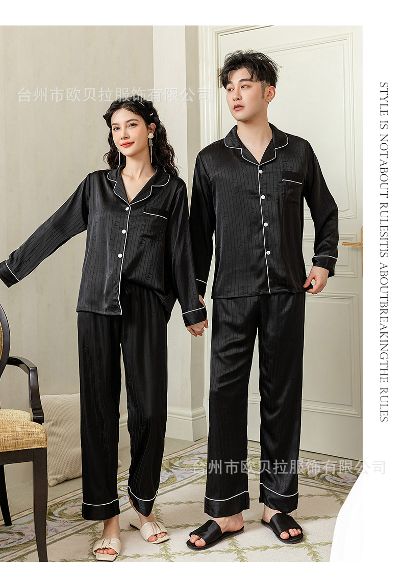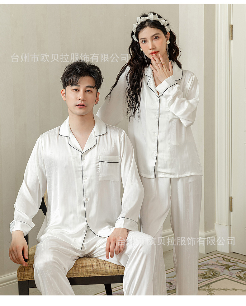 작은 빨간 책 같은 스타일 커플 잠옷 여자의 봄과 가을 자카드 얼음 실크 긴 소매 얇은 옷깃 남자의 가정 의류 도매