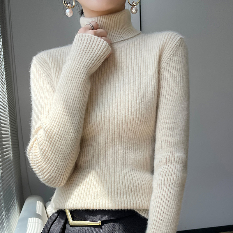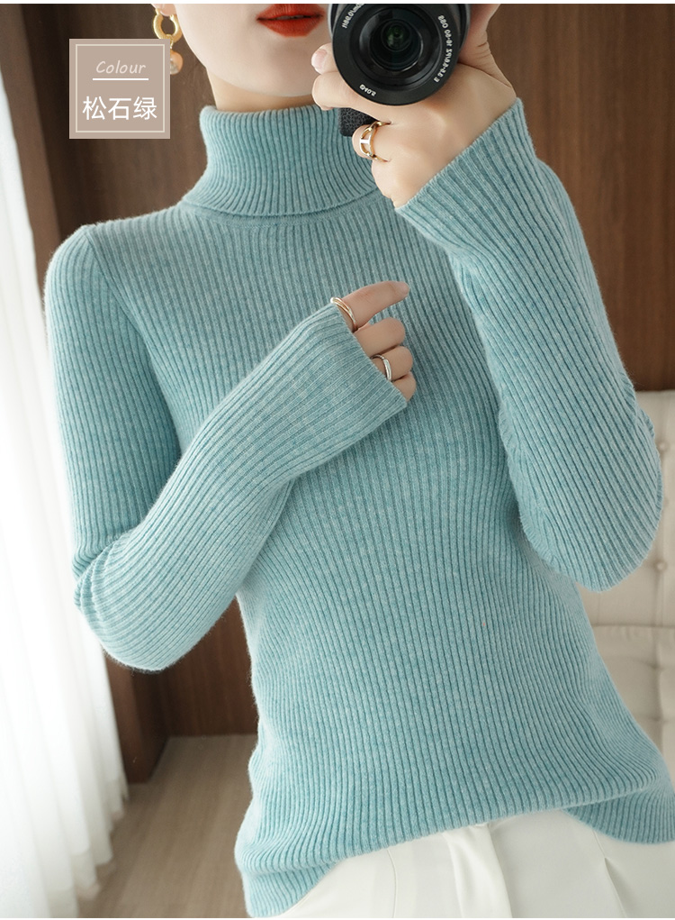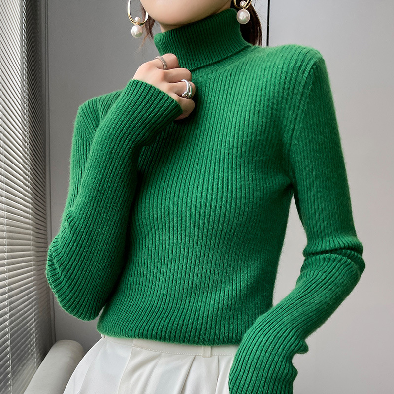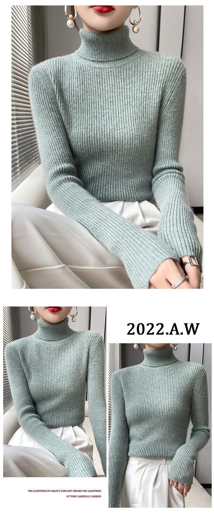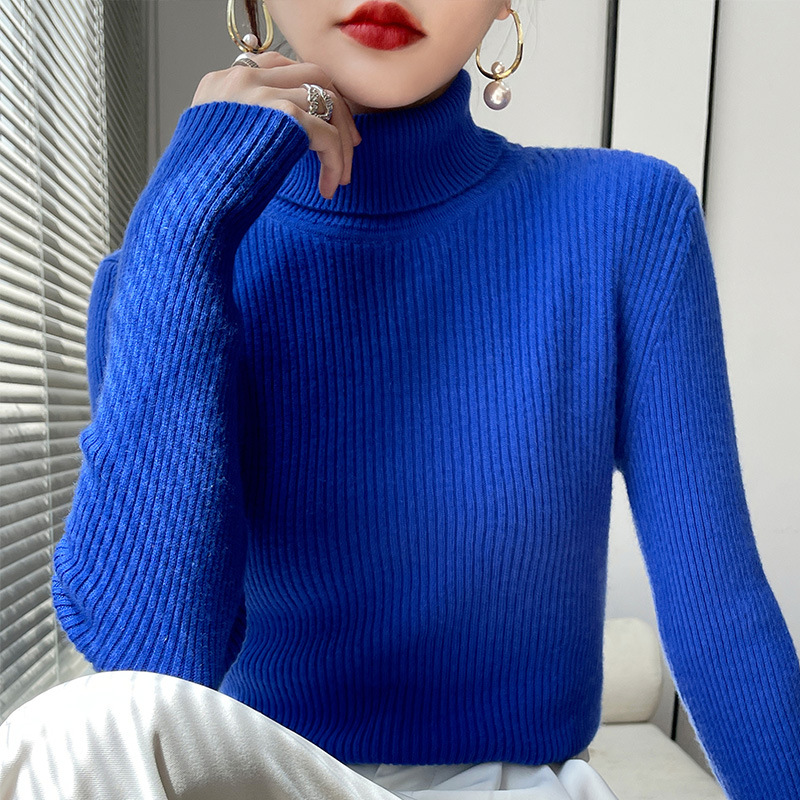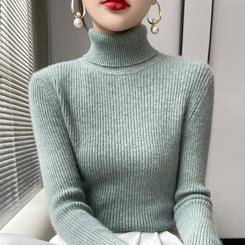 여성용 가을과 겨울 2023 터틀넥 스웨터 오버코트 새로운 슬림핏 긴팔 울 니트 두꺼운 베이스 셔츠스토어 가기