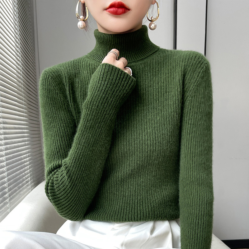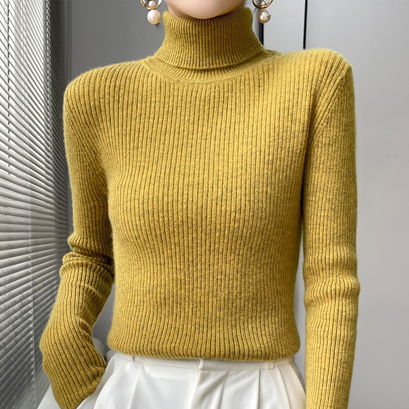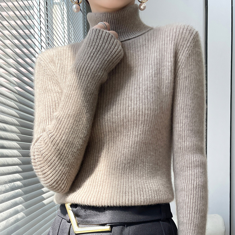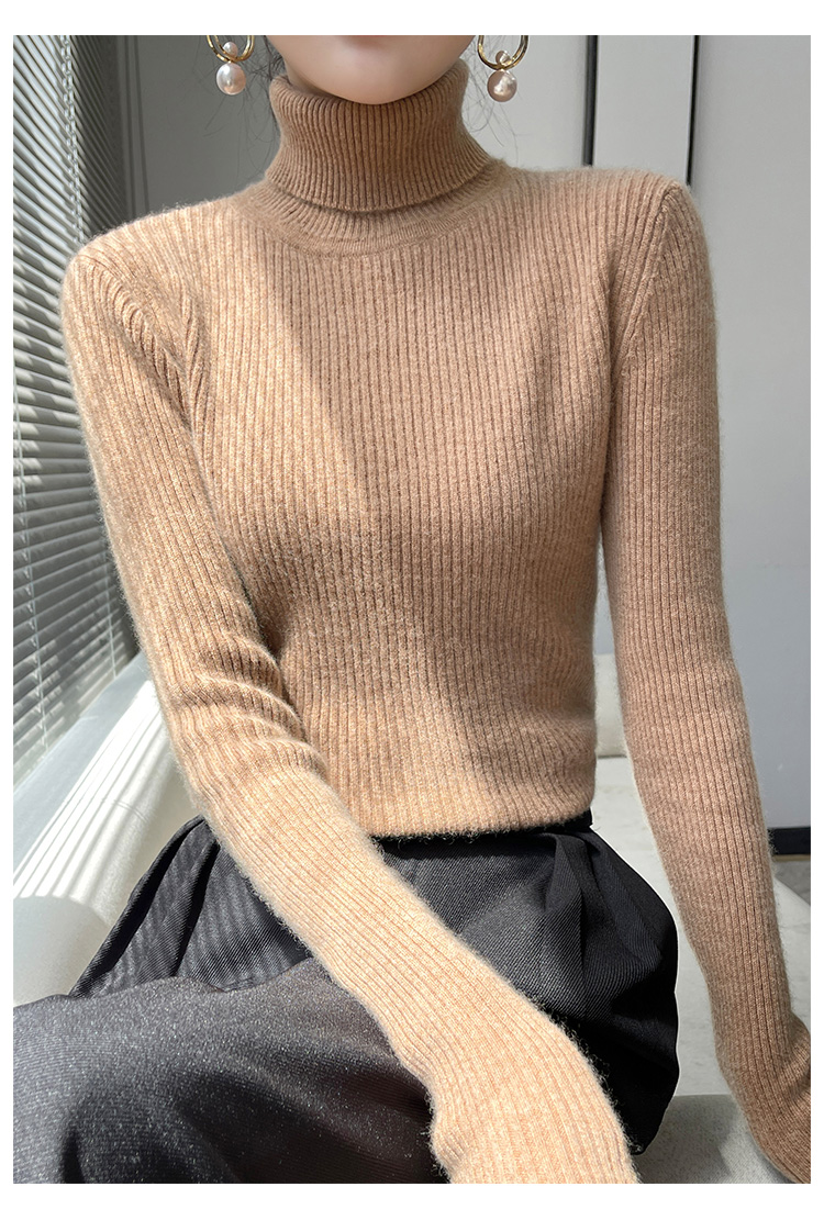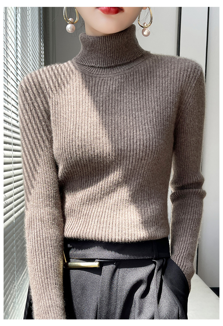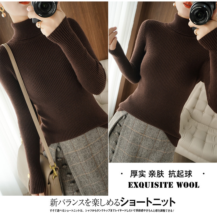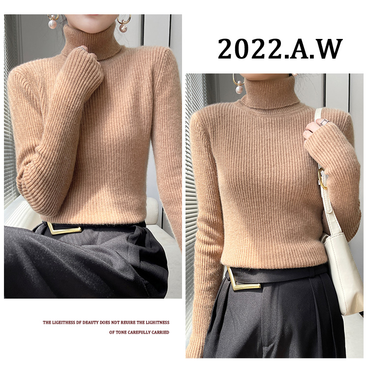 여성용 가을과 겨울 2023 터틀넥 스웨터 오버코트 새로운 슬림핏 긴팔 울 니트 두꺼운 베이스 셔츠스토어 가기