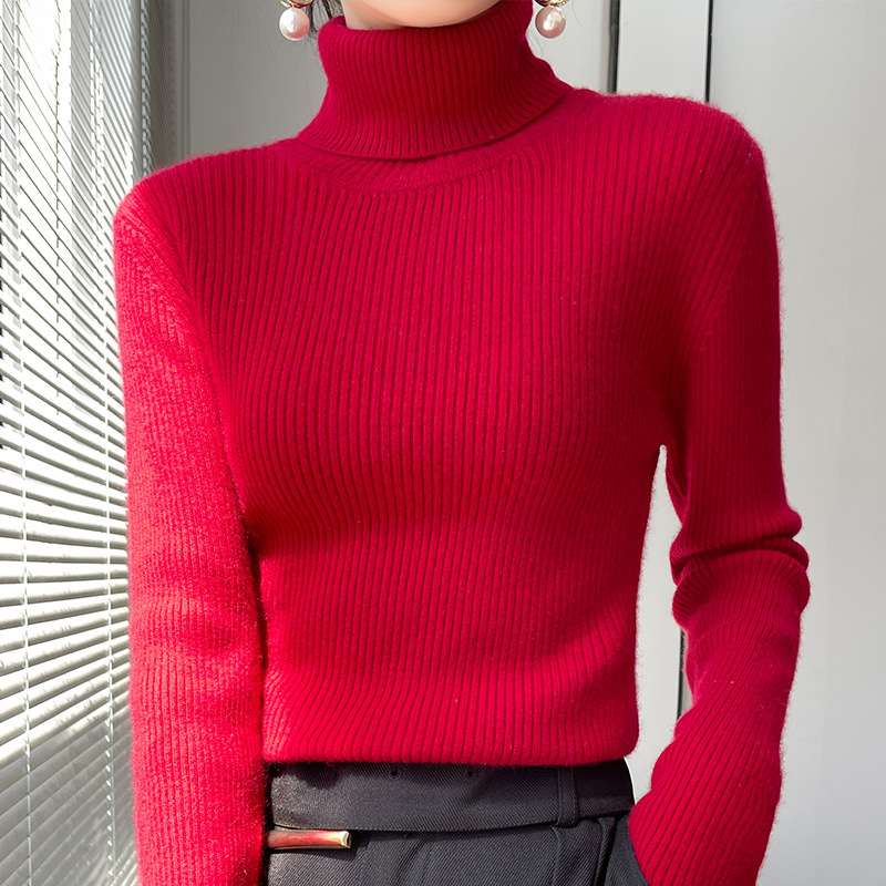여성용 가을과 겨울 2023 터틀넥 스웨터 오버코트 새로운 슬림핏 긴팔 울 니트 두꺼운 베이스 셔츠