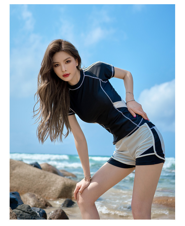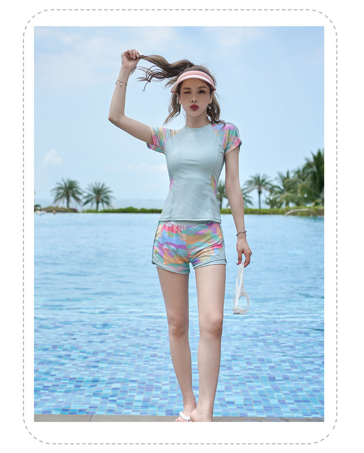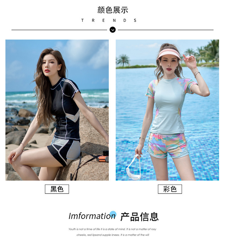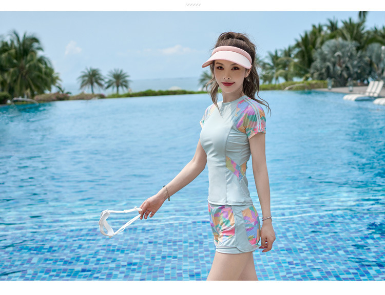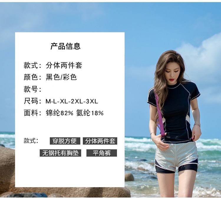 스포츠 새로운 반팔 스플릿 수영복 여성용 여름 보수 복서 플러스 사이즈 MM 배꼽 슬리밍 유행 온천 수영복스토어 가기