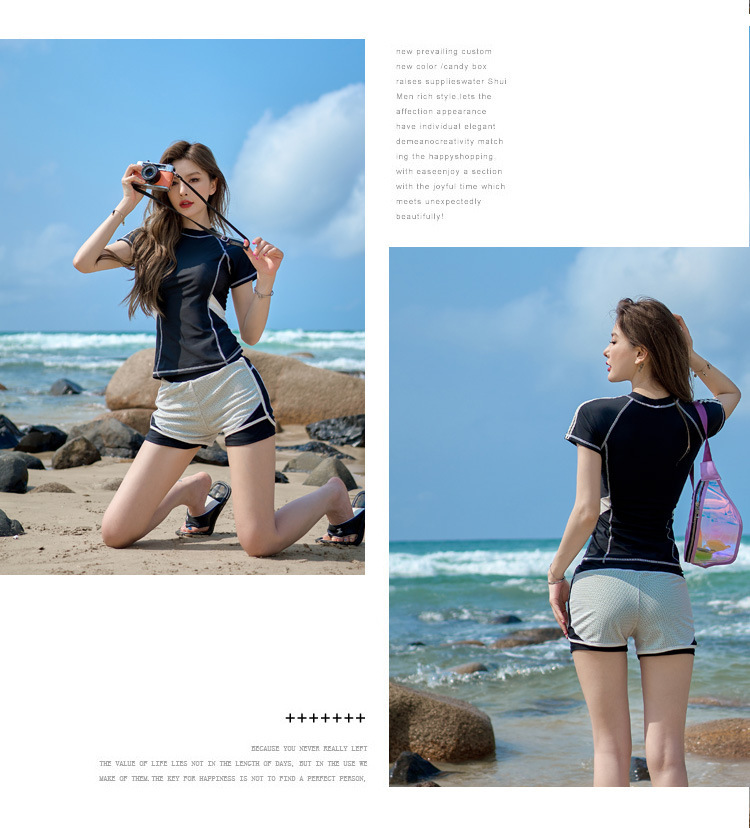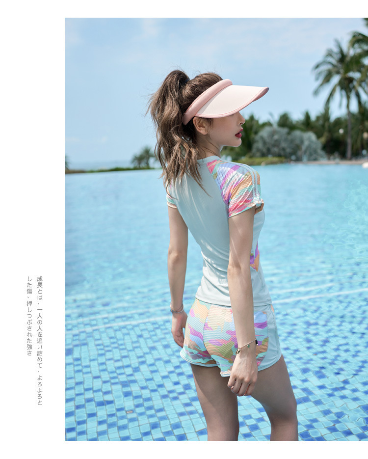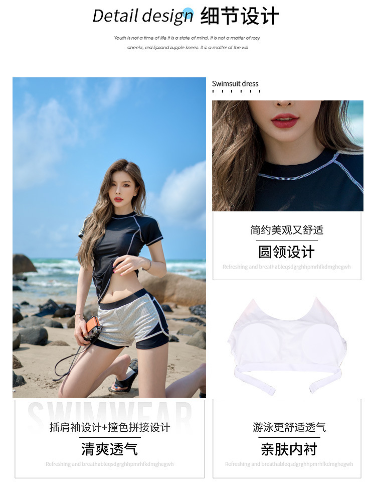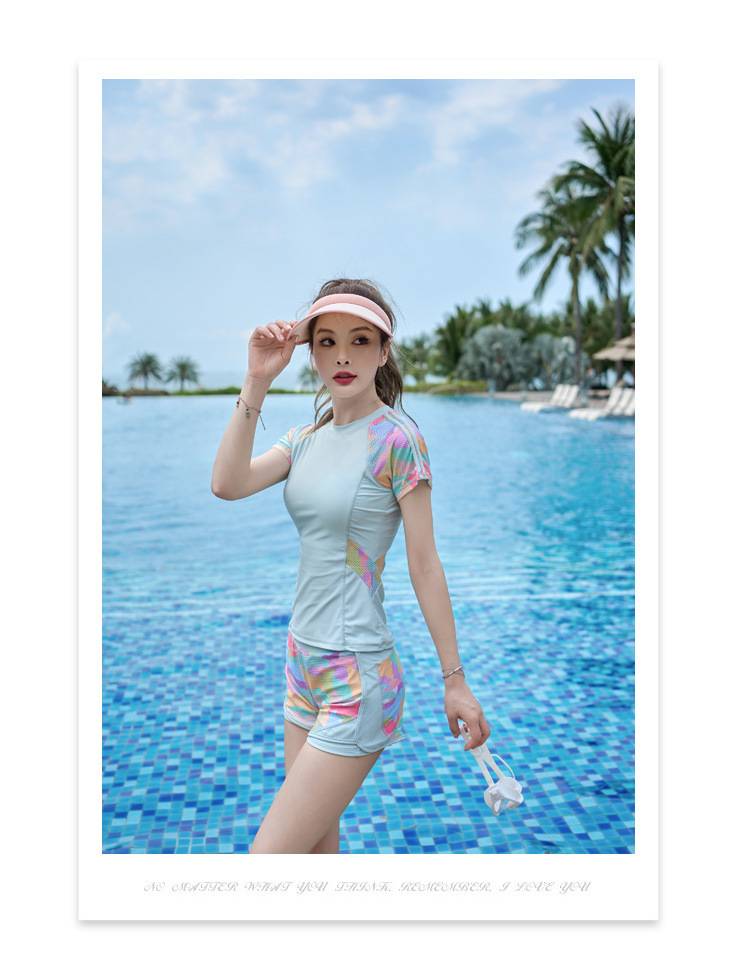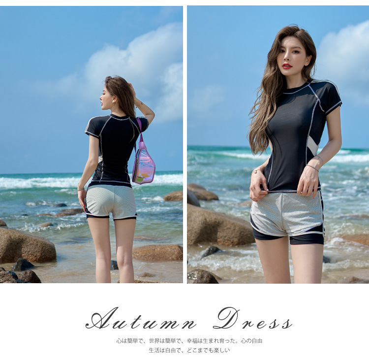 스포츠 새로운 반팔 스플릿 수영복 여성용 여름 보수 복서 플러스 사이즈 MM 배꼽 슬리밍 유행 온천 수영복스토어 가기