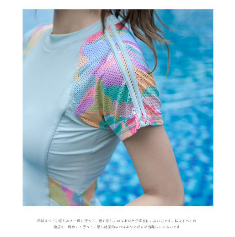 스포츠 새로운 반팔 스플릿 수영복 여성용 여름 보수 복서 플러스 사이즈 MM 배꼽 슬리밍 유행 온천 수영복