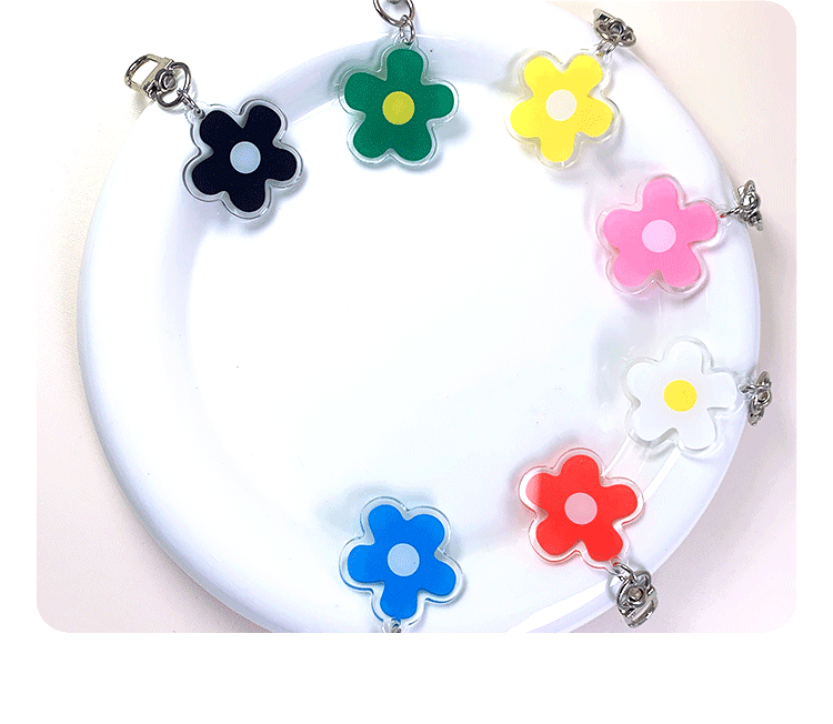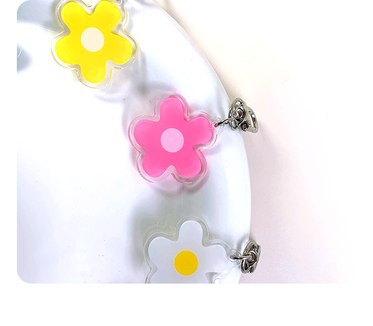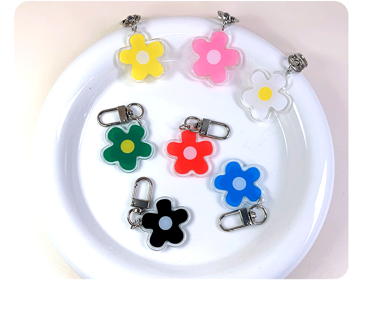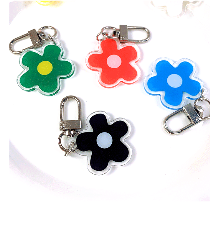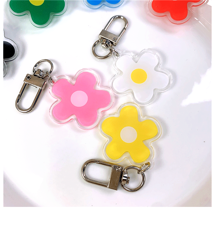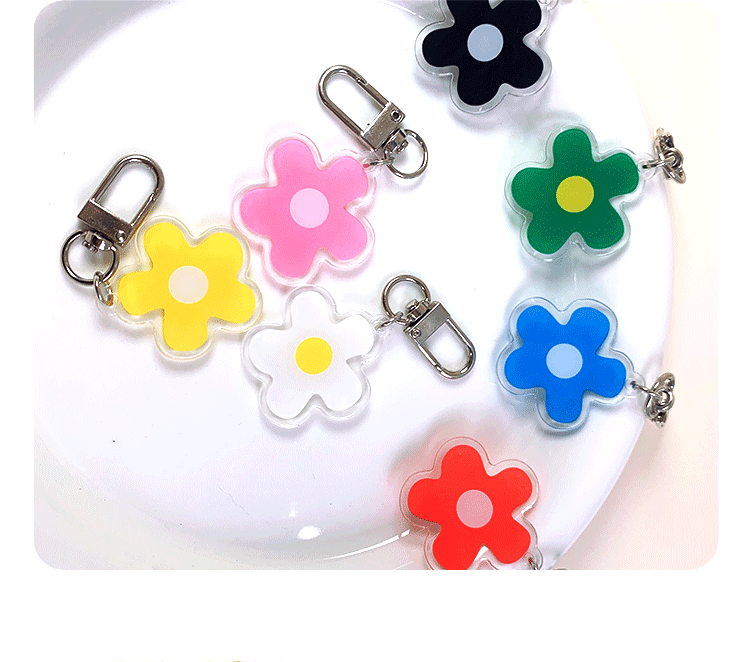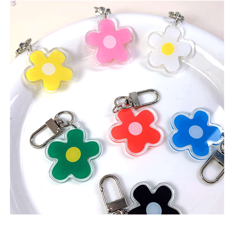 귀여운 꽃 꽃 열쇠 고리 투명 아크릴 양면 인쇄 학생 학교 가방 액세서리 자동차 펜던트 선물스토어 가기