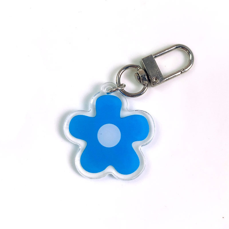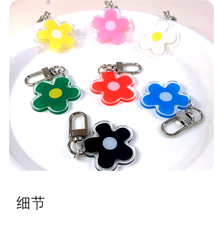 귀여운 꽃 꽃 열쇠 고리 투명 아크릴 양면 인쇄 학생 학교 가방 액세서리 자동차 펜던트 선물