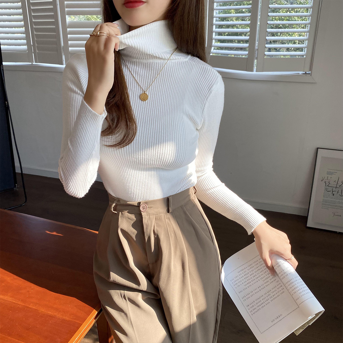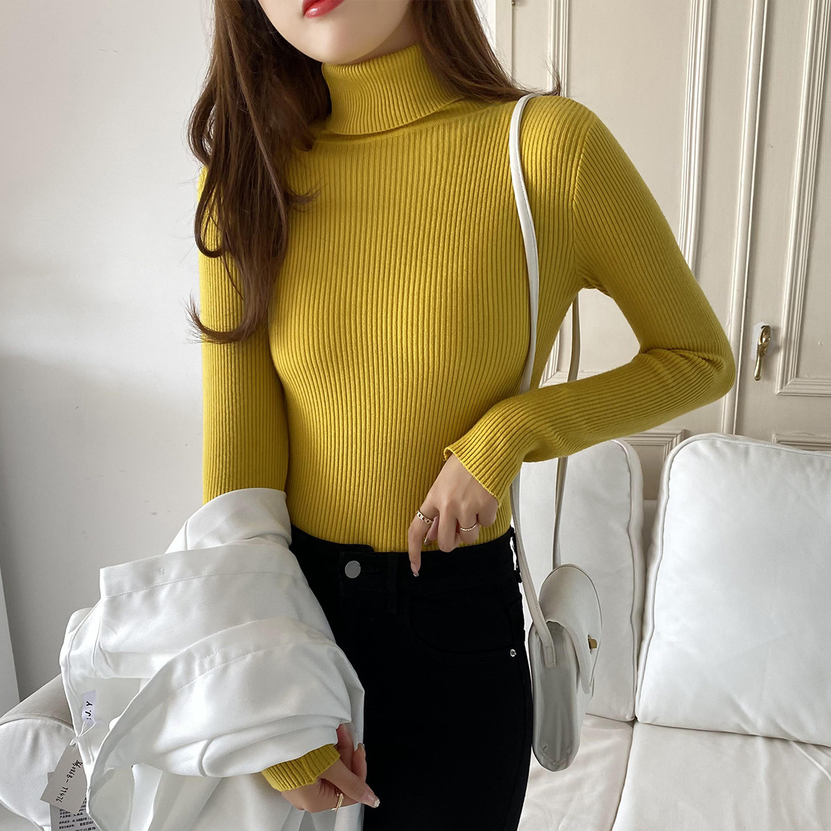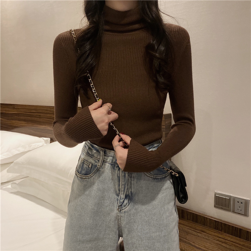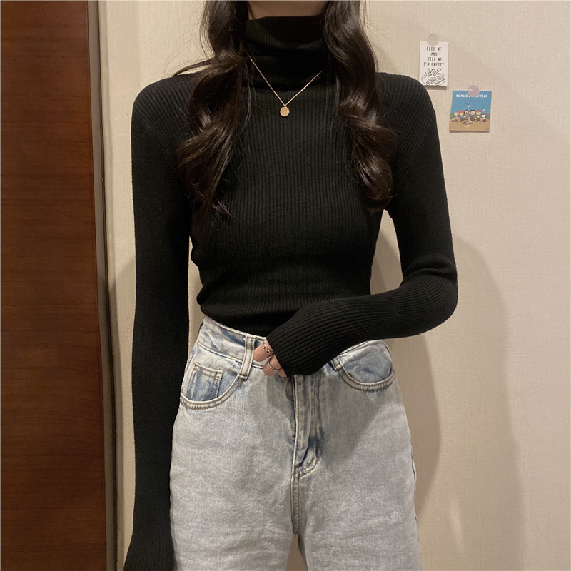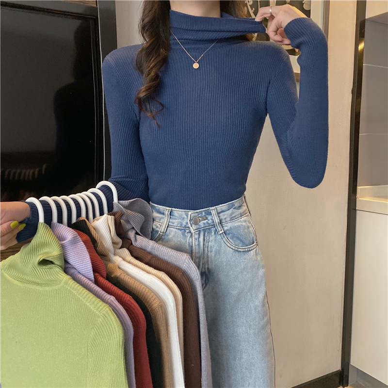 터틀넥 스웨터 여성용 가을 새로운 서양식 슬림핏 타이트 짧은 내부 긴팔 베이스 스웨터 탑 가을과 겨울스토어 가기