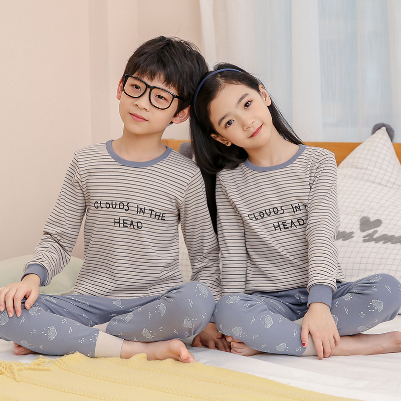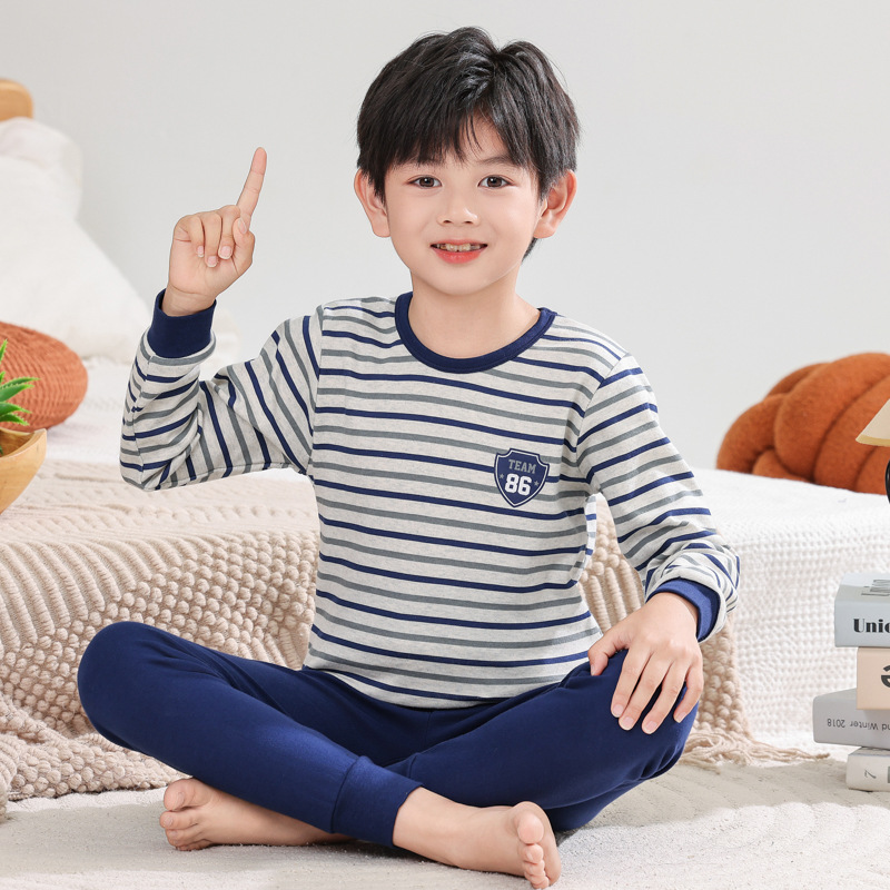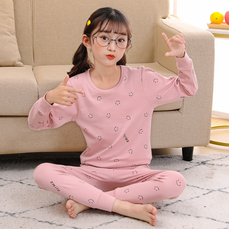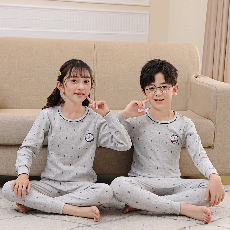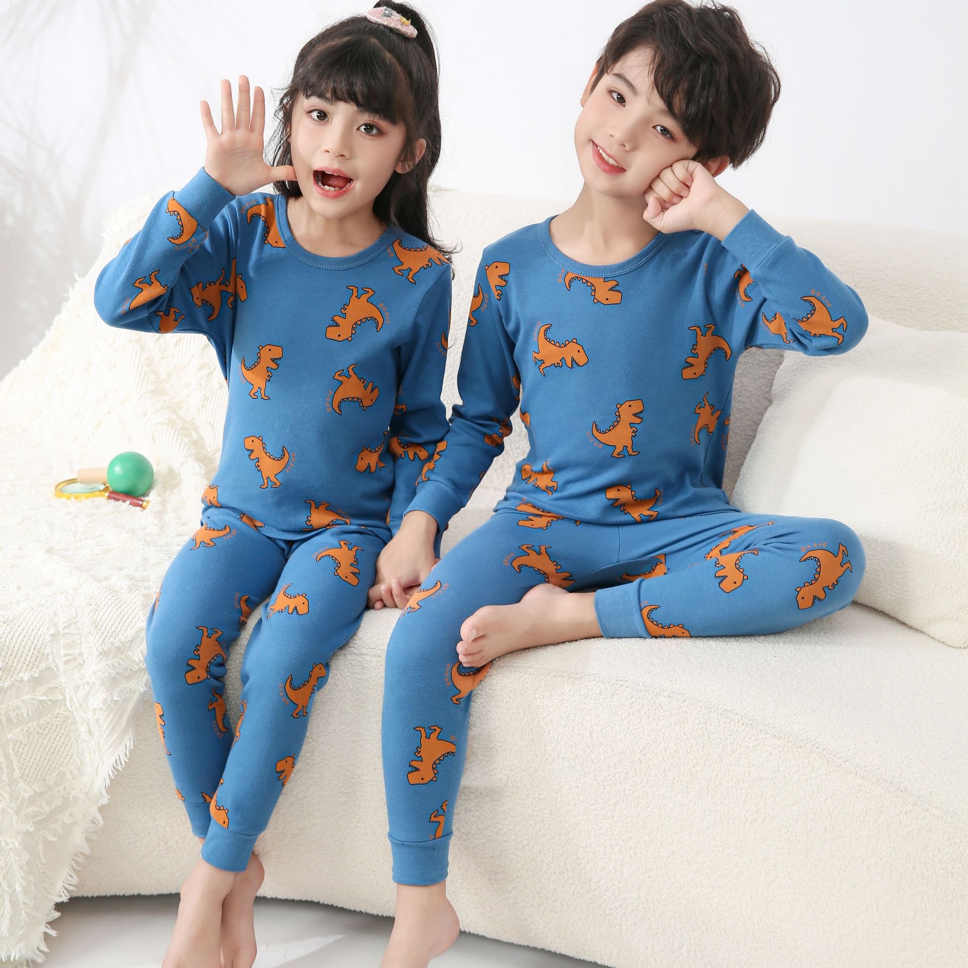 2024 년 가을과 겨울 새로운 어린이 면 속옷 세트 만화 인쇄 면 양모 기본 셔츠