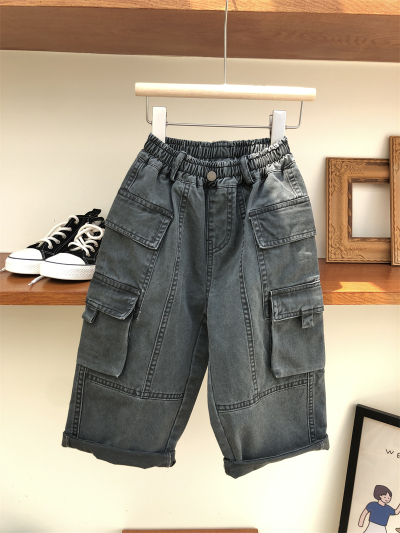 가을 2023 소년과 소녀를위한 어린이 멀티 포켓 바지 미국식 고밀도 능 그물 야외 바지
