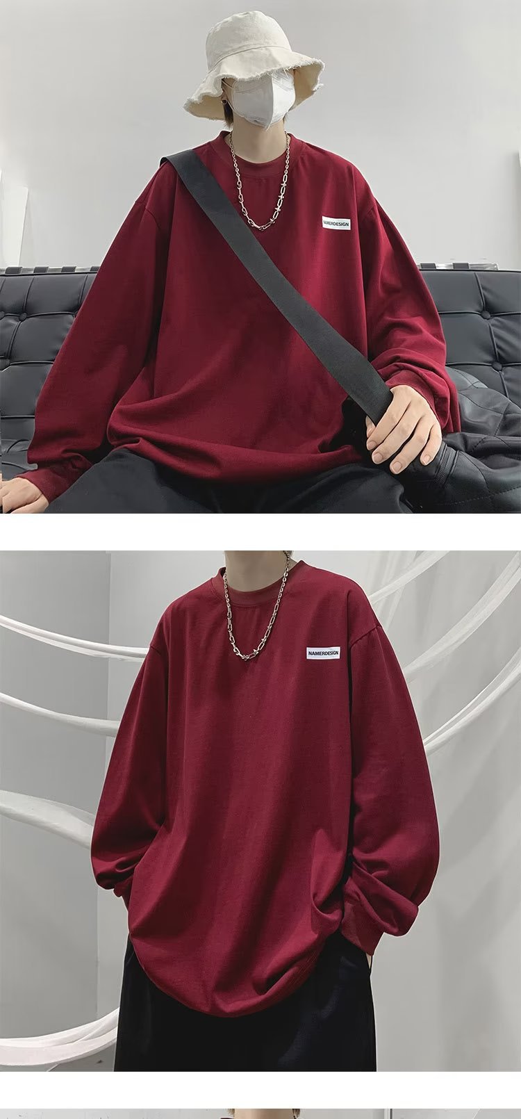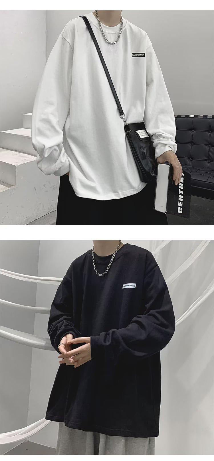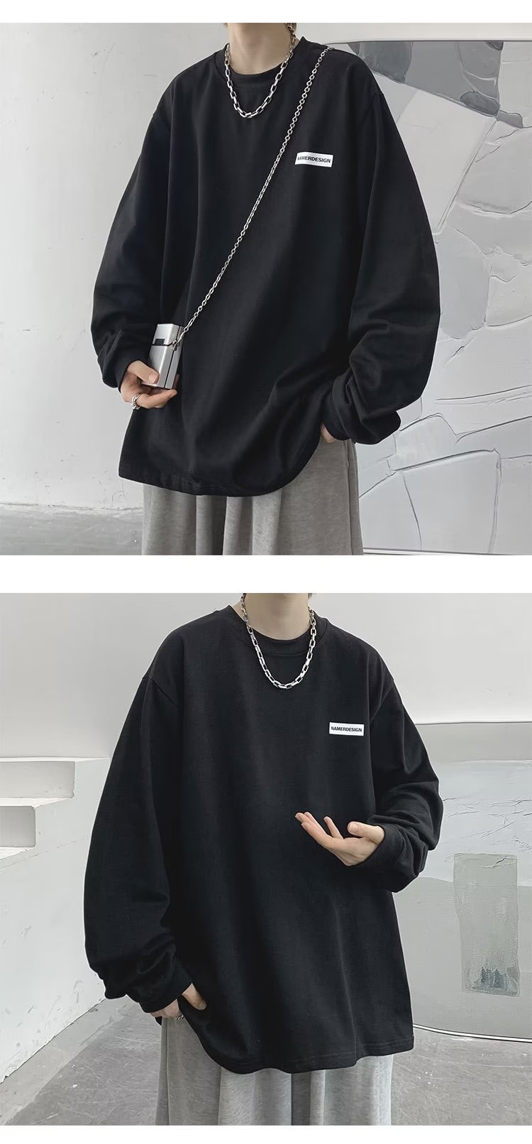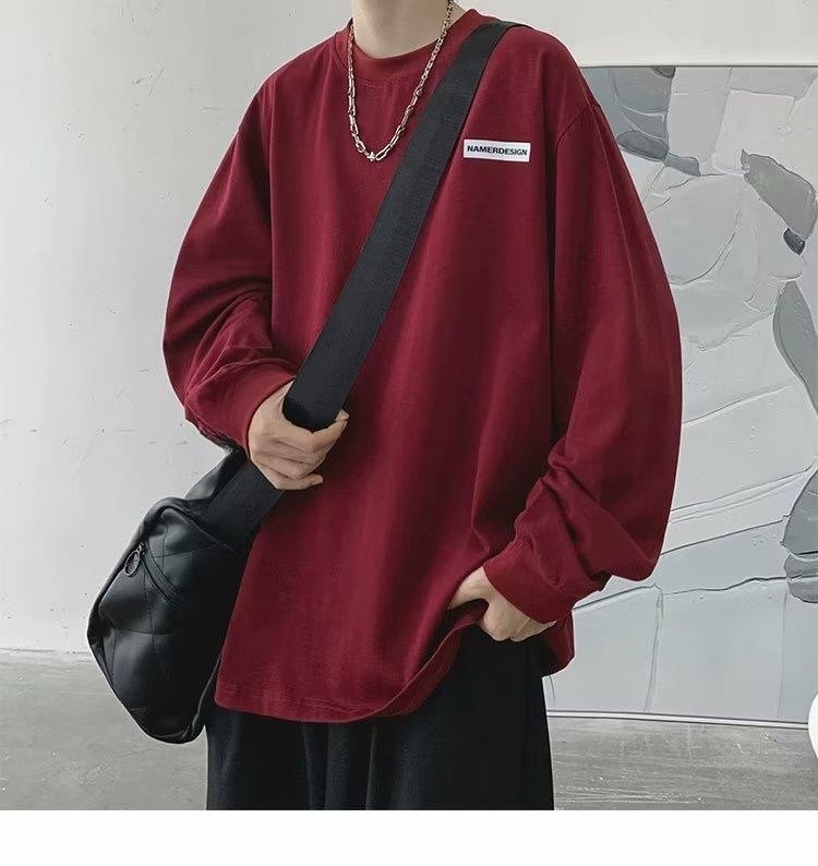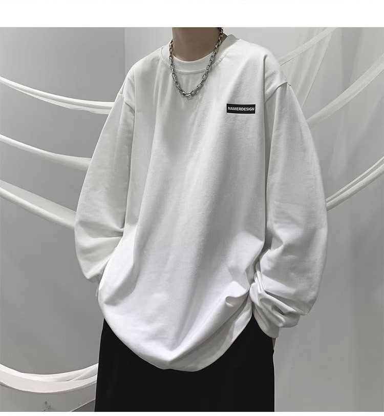 미국 복고풍 티셔츠 긴팔 남성용 고급 중형 스웨터 봄과 가을 2023 새로운 남성 하의 셔츠 도매스토어 가기