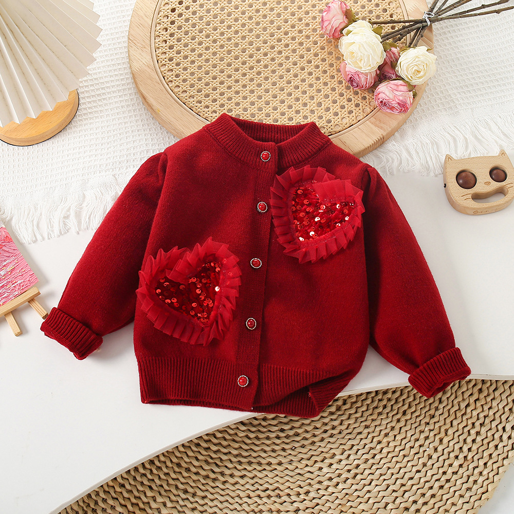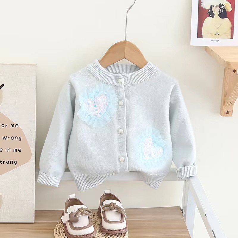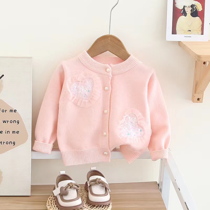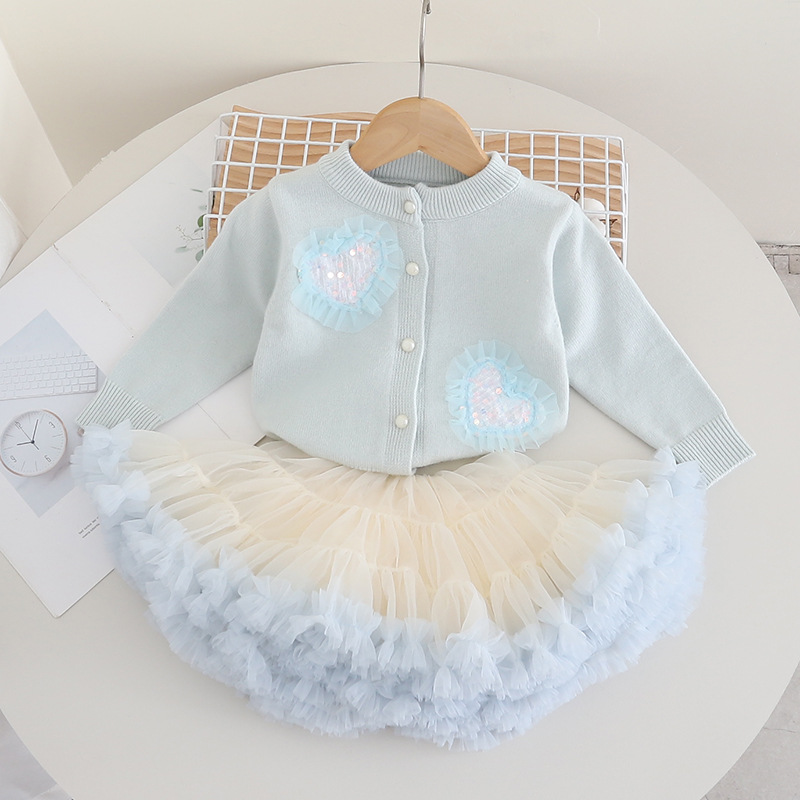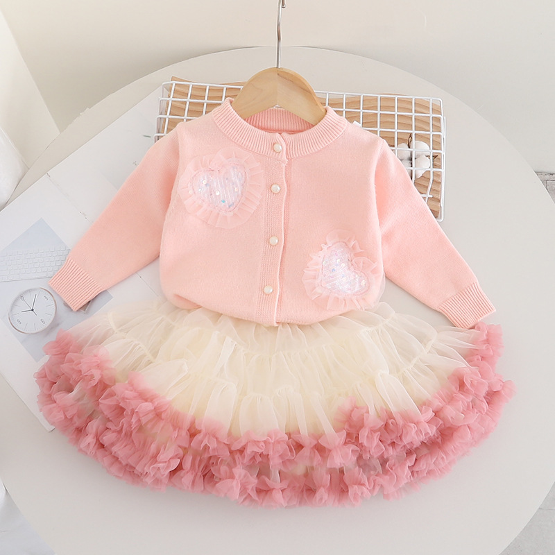 여자 가디건 스웨터 가을과 겨울 새로운 하트 니트 가디건 + 메쉬 푹신한 스커트 아기 소녀 공주 스커트 세련된스토어 가기