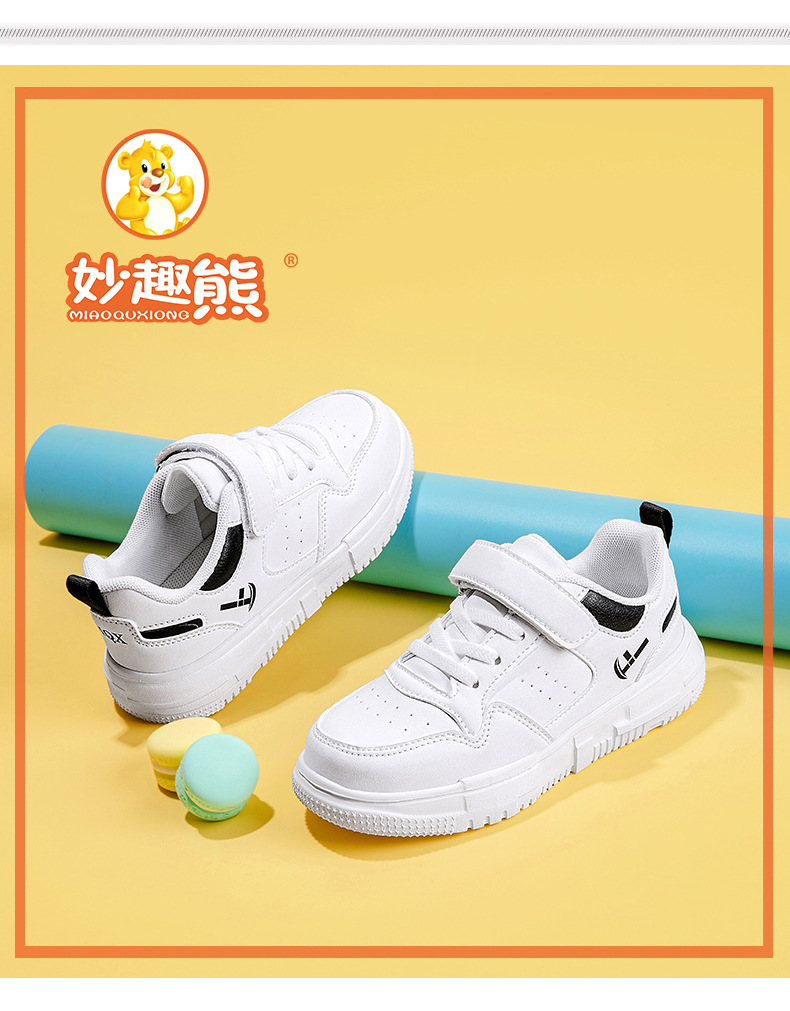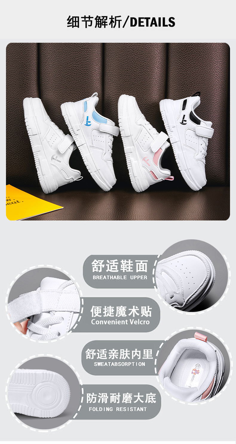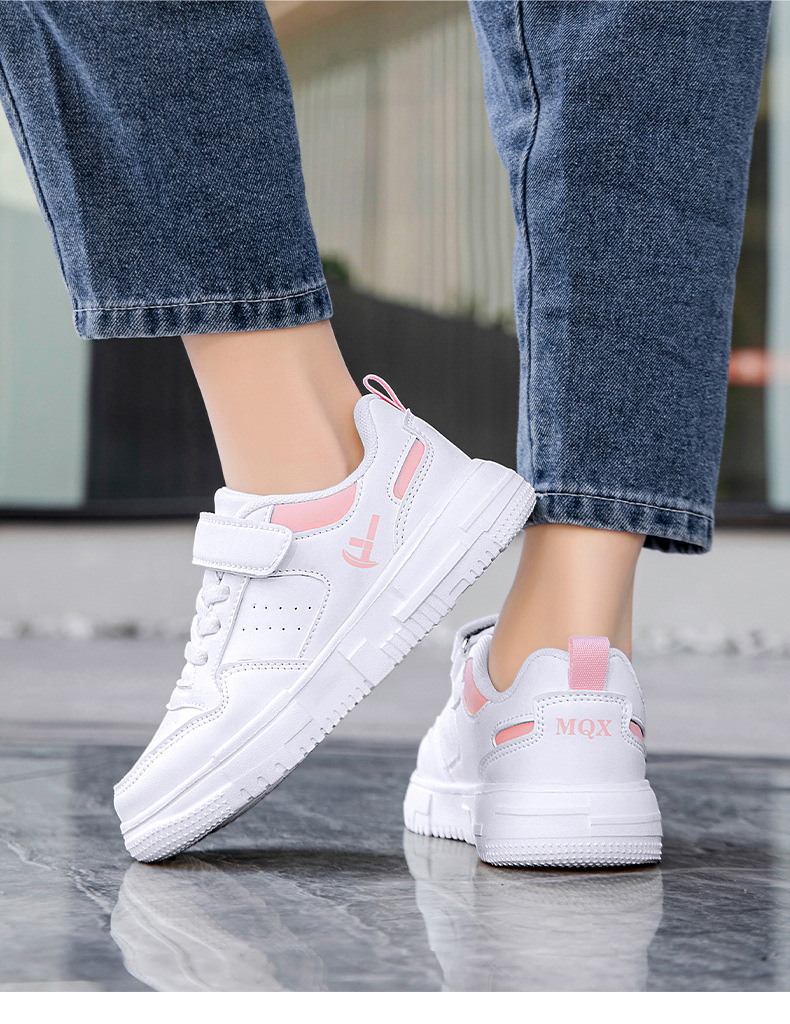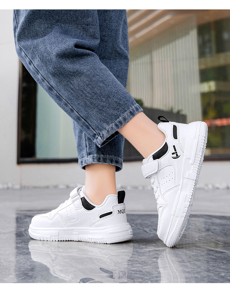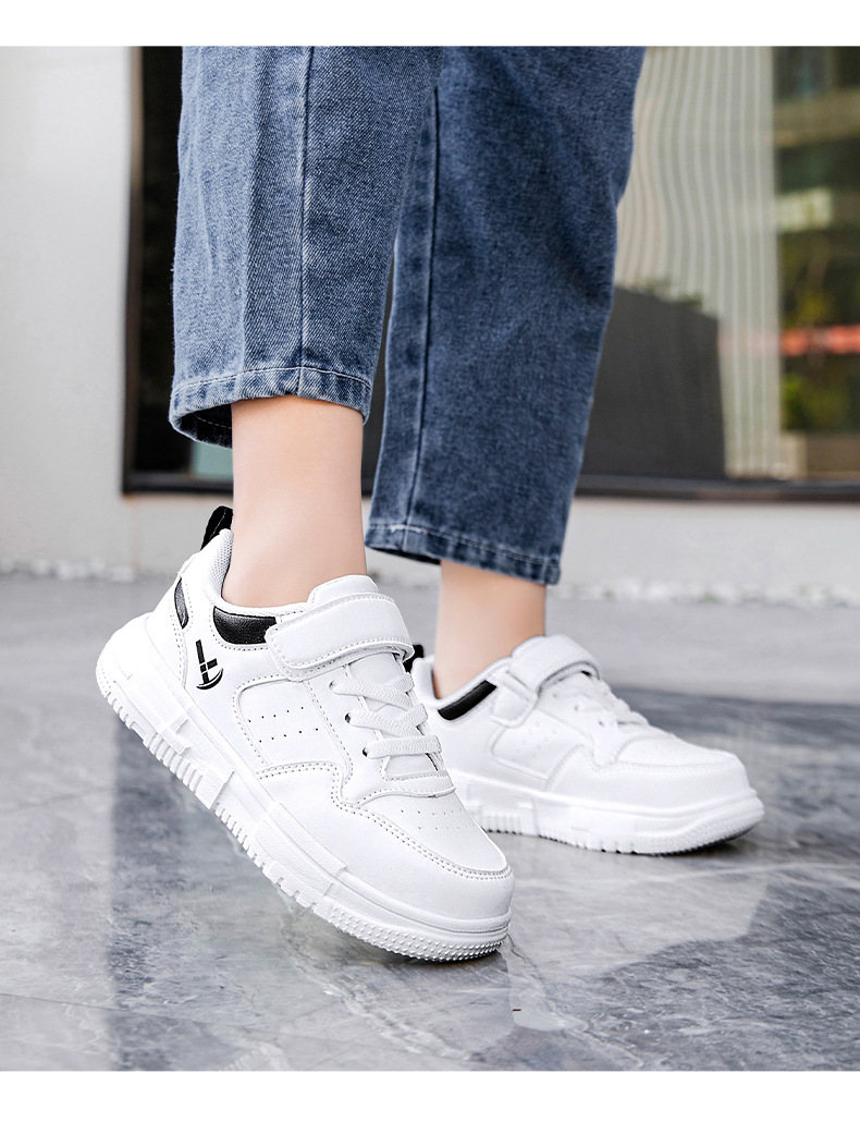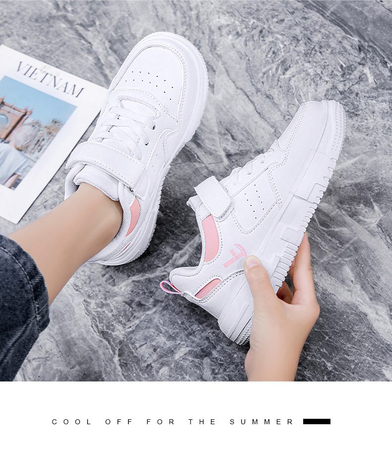 어린이 학생 캐주얼 흰색 신발 새로운 사계절 소년과 소녀 가죽 메쉬 화이트 운동화 부드러운 바닥