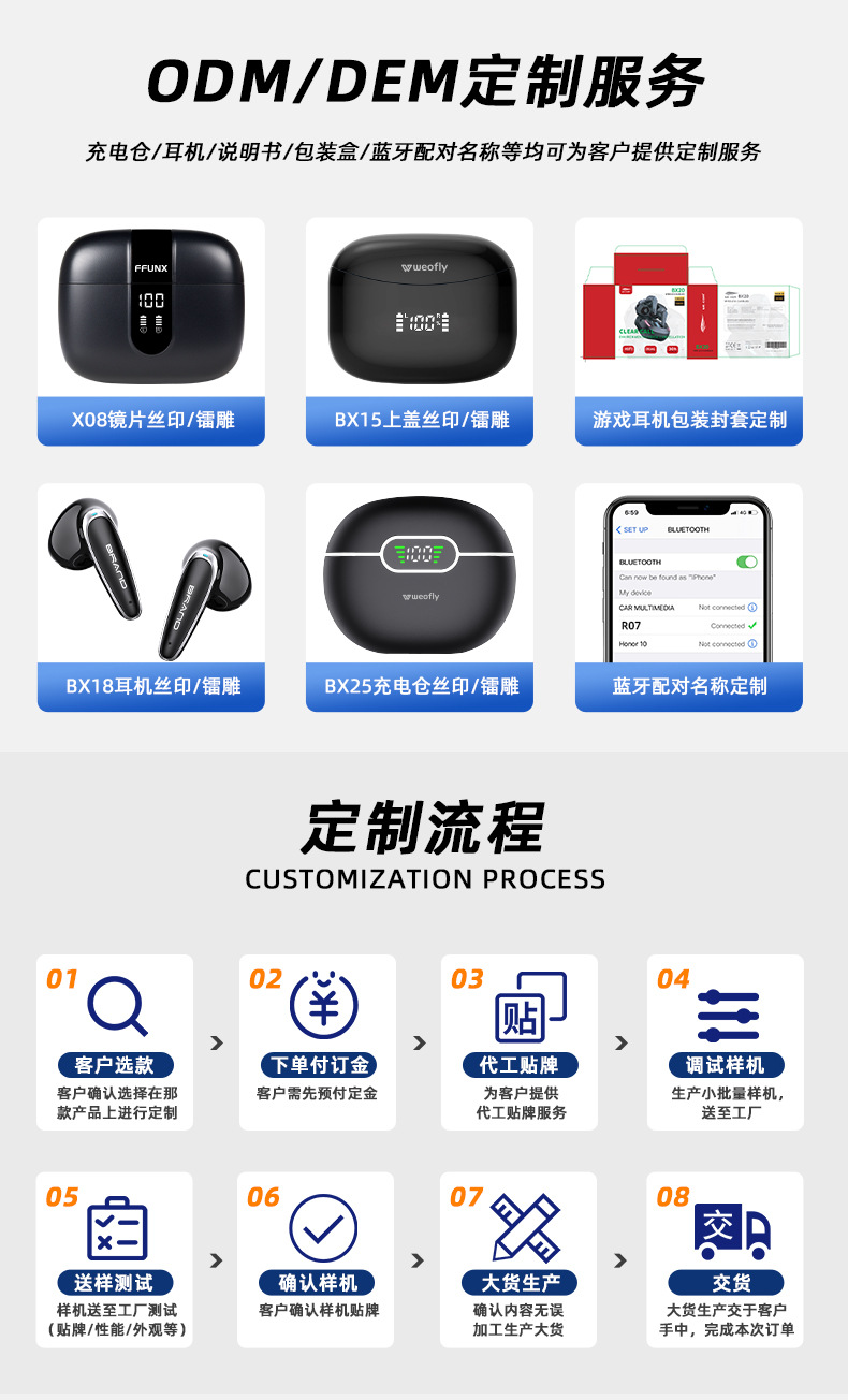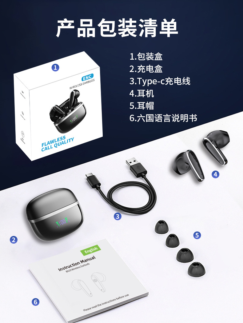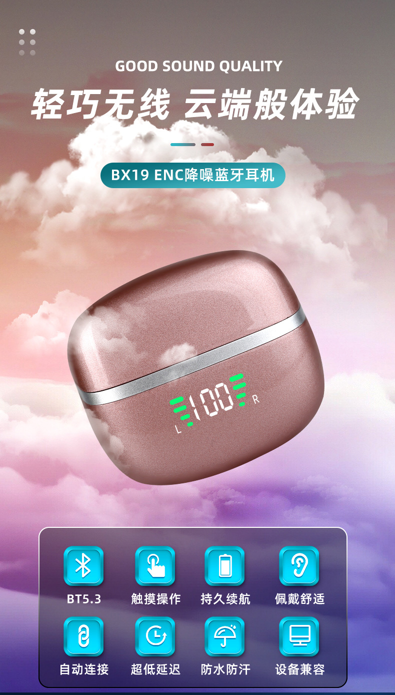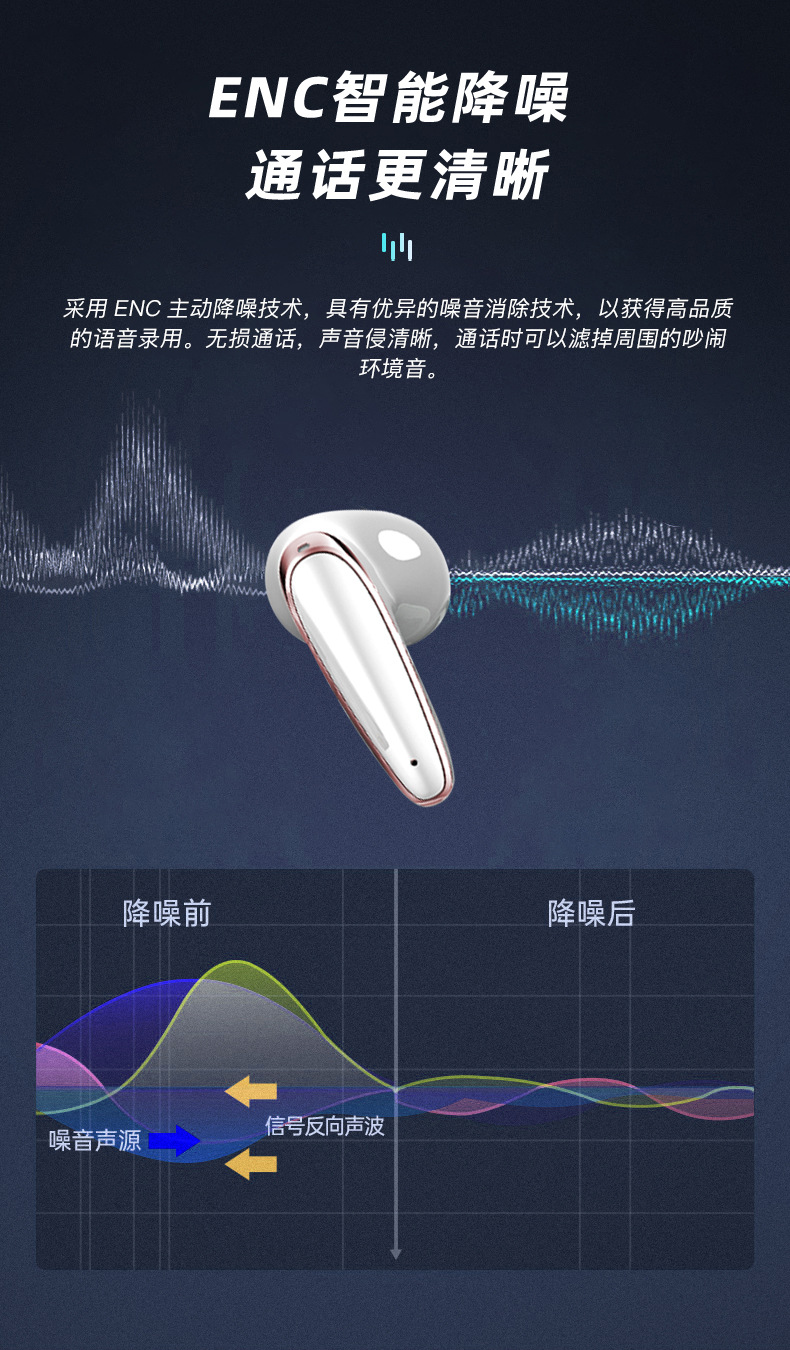 맞춤형 새로운 스마트 디지털 ENC 소음 감소 귀 무선 헤드셋 휴대용 긴 수명 UV 블루투스 헤드셋스토어 가기