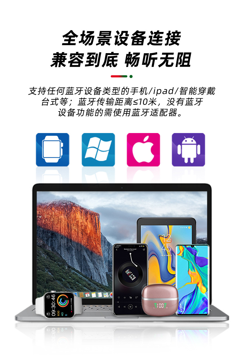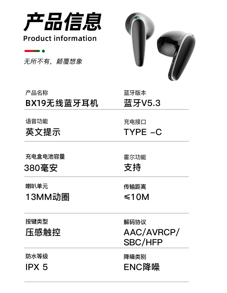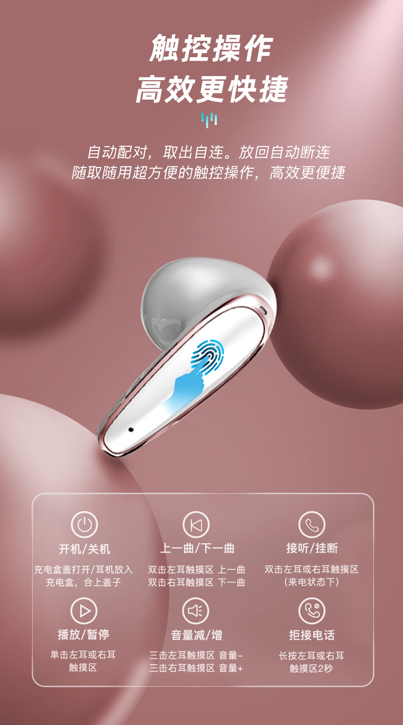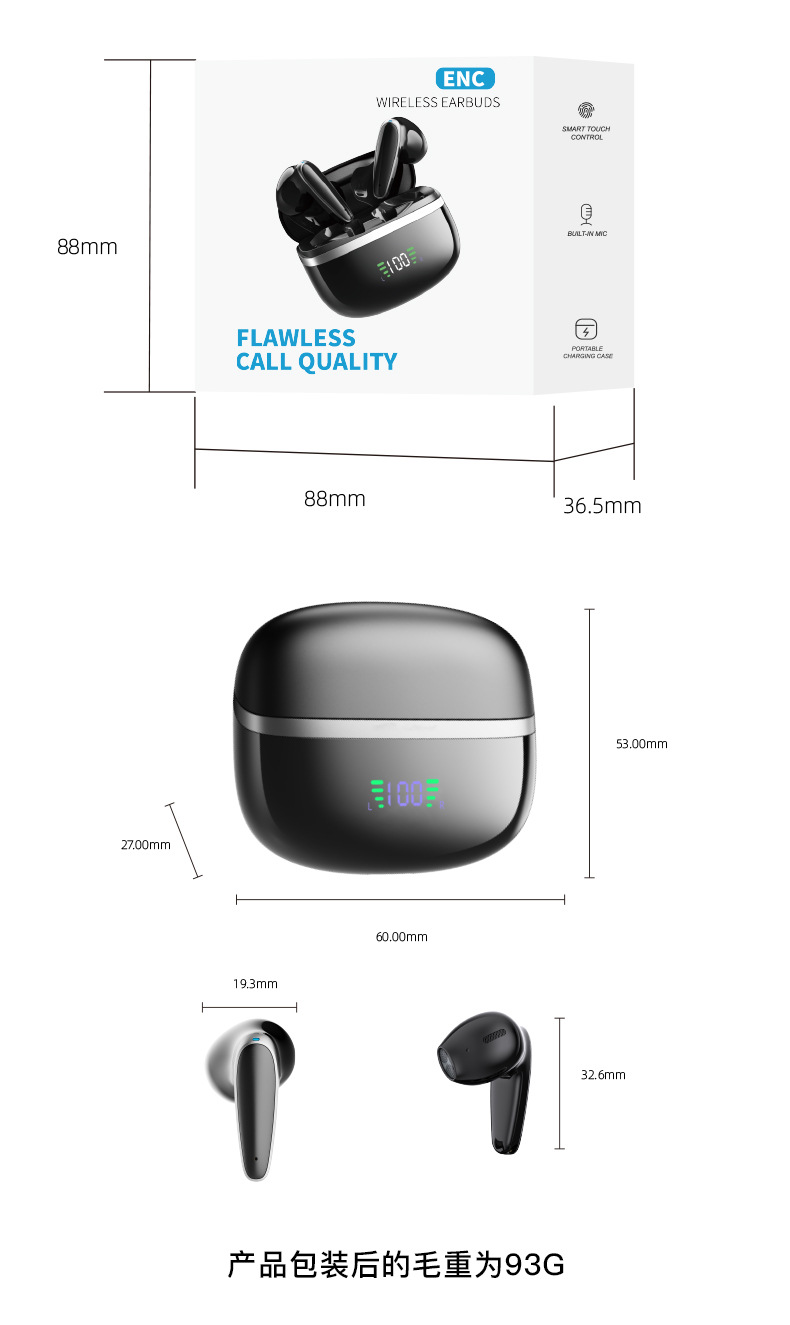 맞춤형 새로운 스마트 디지털 ENC 소음 감소 귀 무선 헤드셋 휴대용 긴 수명 UV 블루투스 헤드셋
