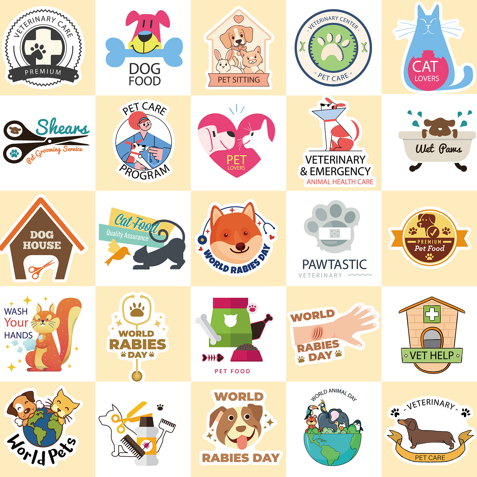 50 만화 수의학 낙서 스티커 개인화 된 장식 애완 동물 병원 관리 강아지 동물 보호 방수 스티커스토어 가기