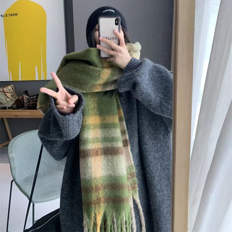 분위기-루프 스카프 여자의 두꺼운 따뜻한 격자 무늬 조커 커플 남자의 대학 스타일 스카프 여자의 겨울스토어 가기