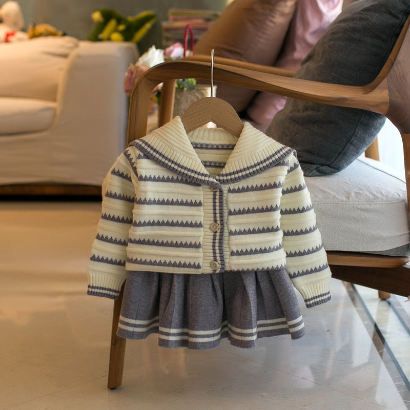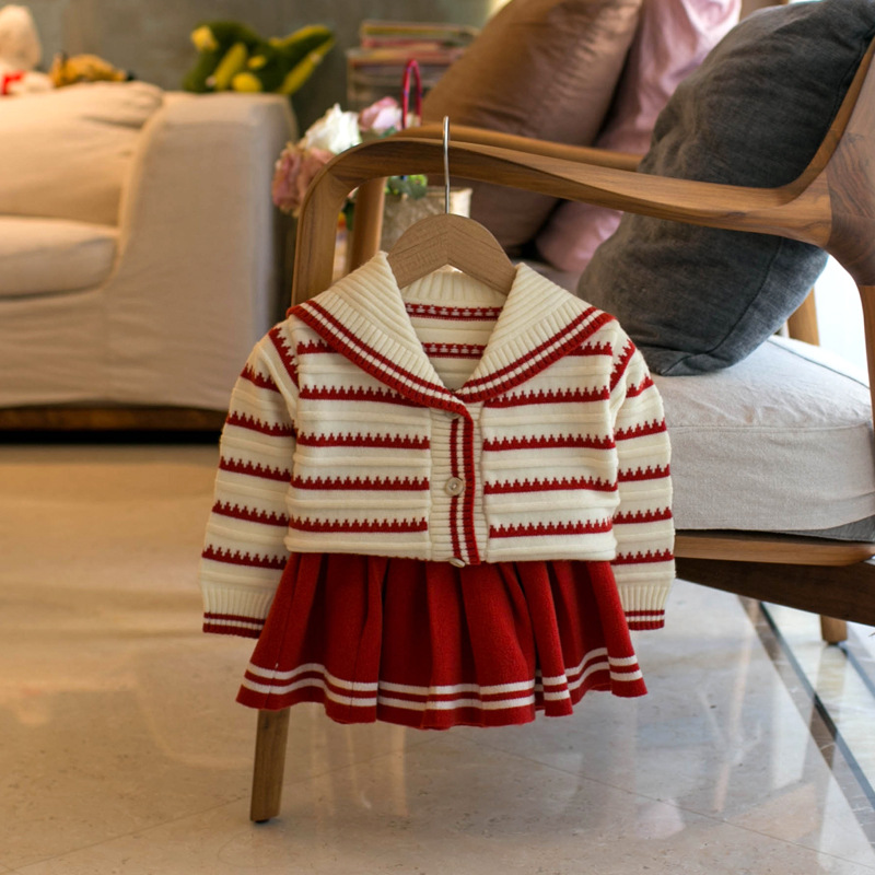 MMTKIDS 가을/겨울 2023 절묘한 스트라이프 브이넥 세트 카디건 T242