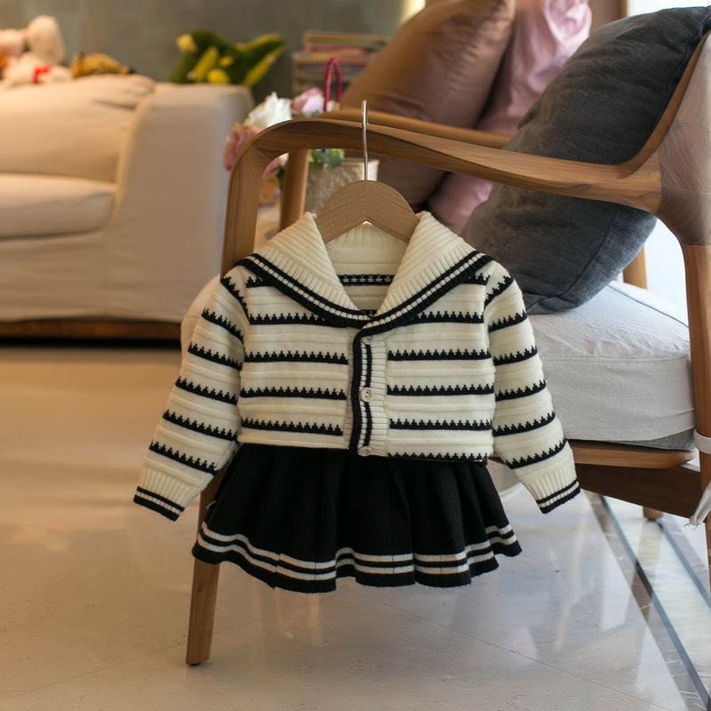 MMTKIDS 가을/겨울 2023 절묘한 스트라이프 브이넥 세트 카디건 T242스토어 가기