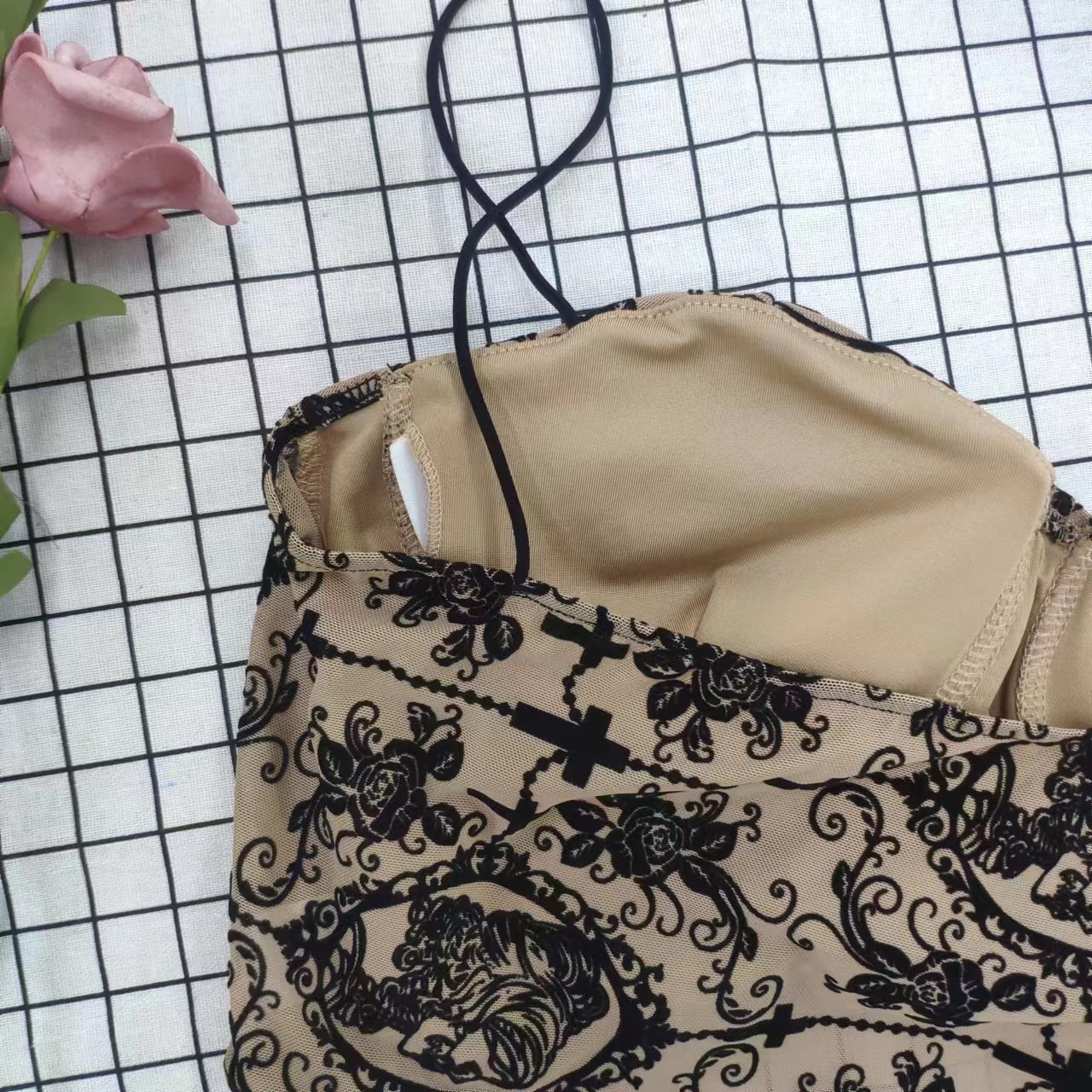 공장 직접 섹시 자수 등이없는 단색 패턴 짧은 슬림핏 라운드 넥 스트랩 유럽과 미국의 작은 조끼