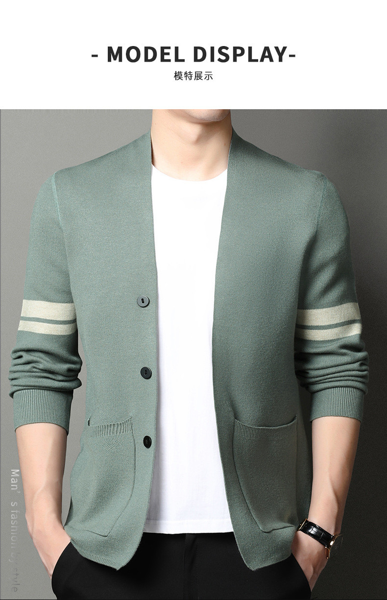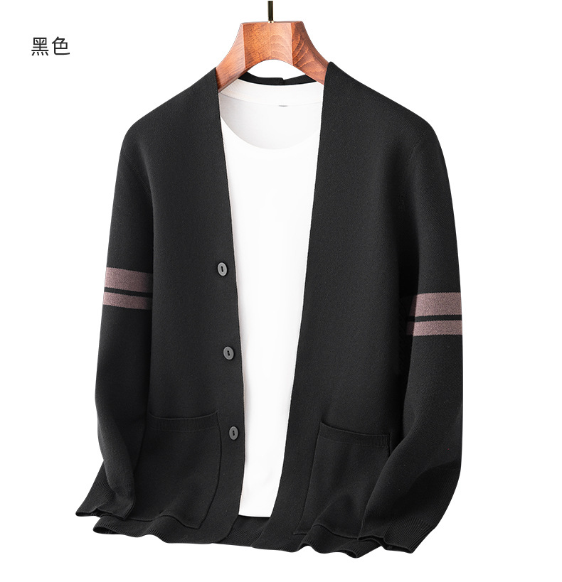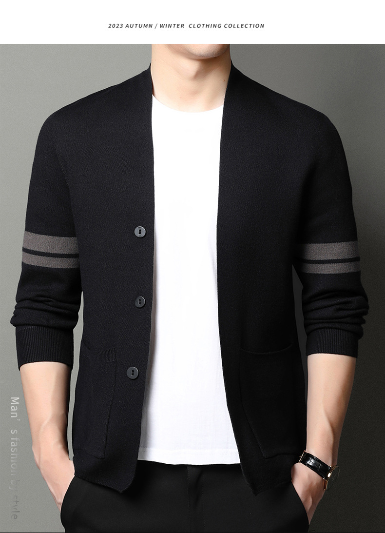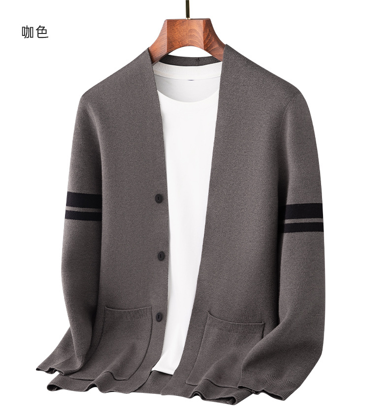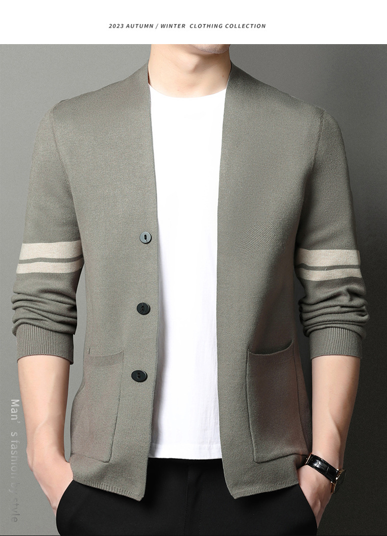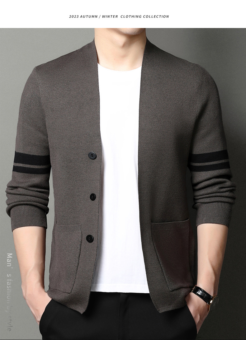 가을과 겨울 남자의 긴 소매 스웨터 니트웨어 두꺼운 혼합 울 가디건 가을 옷 포켓 자카드 V-넥 재킷